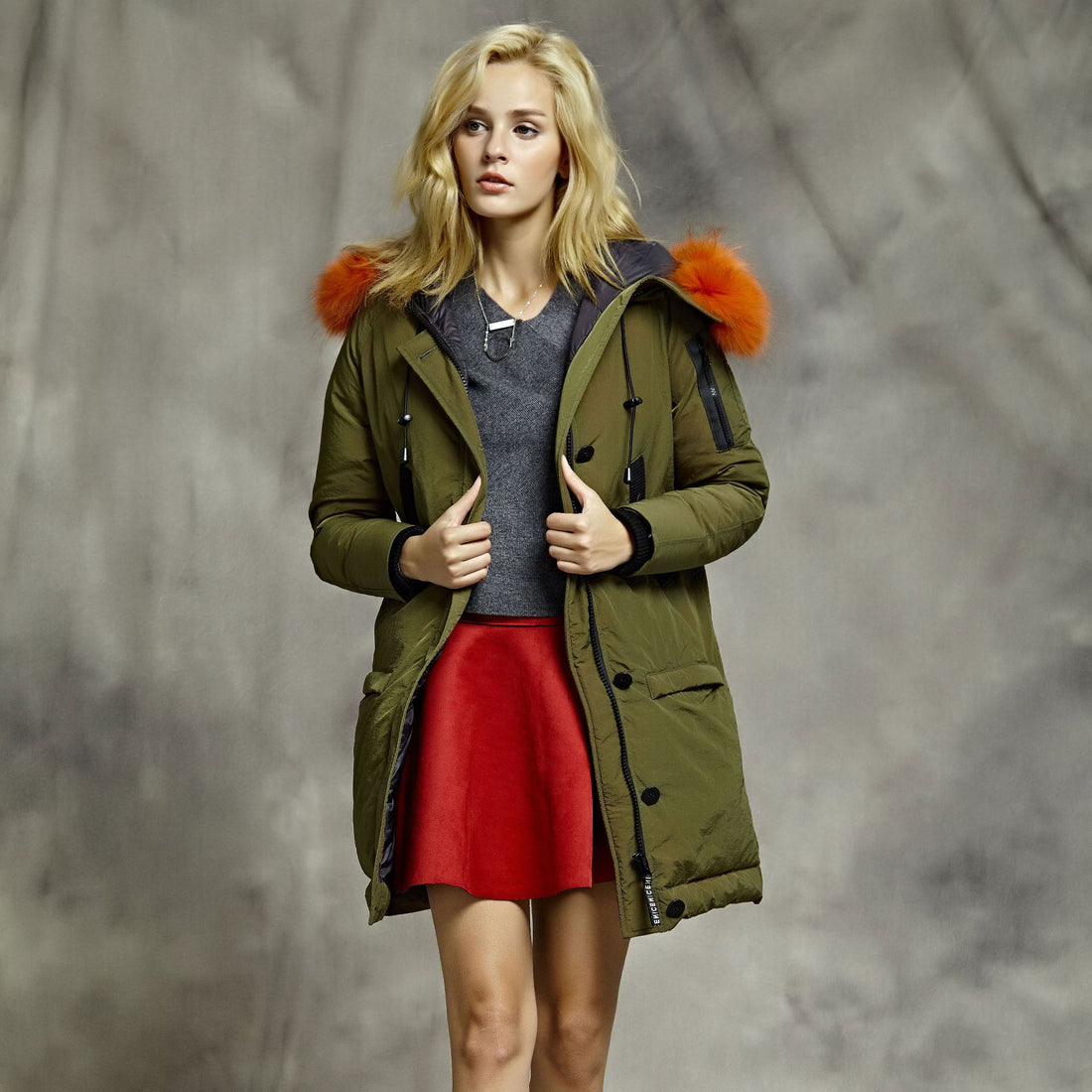 Style Mid-Length Down Jacket with Raccoon Fur Collar for Women