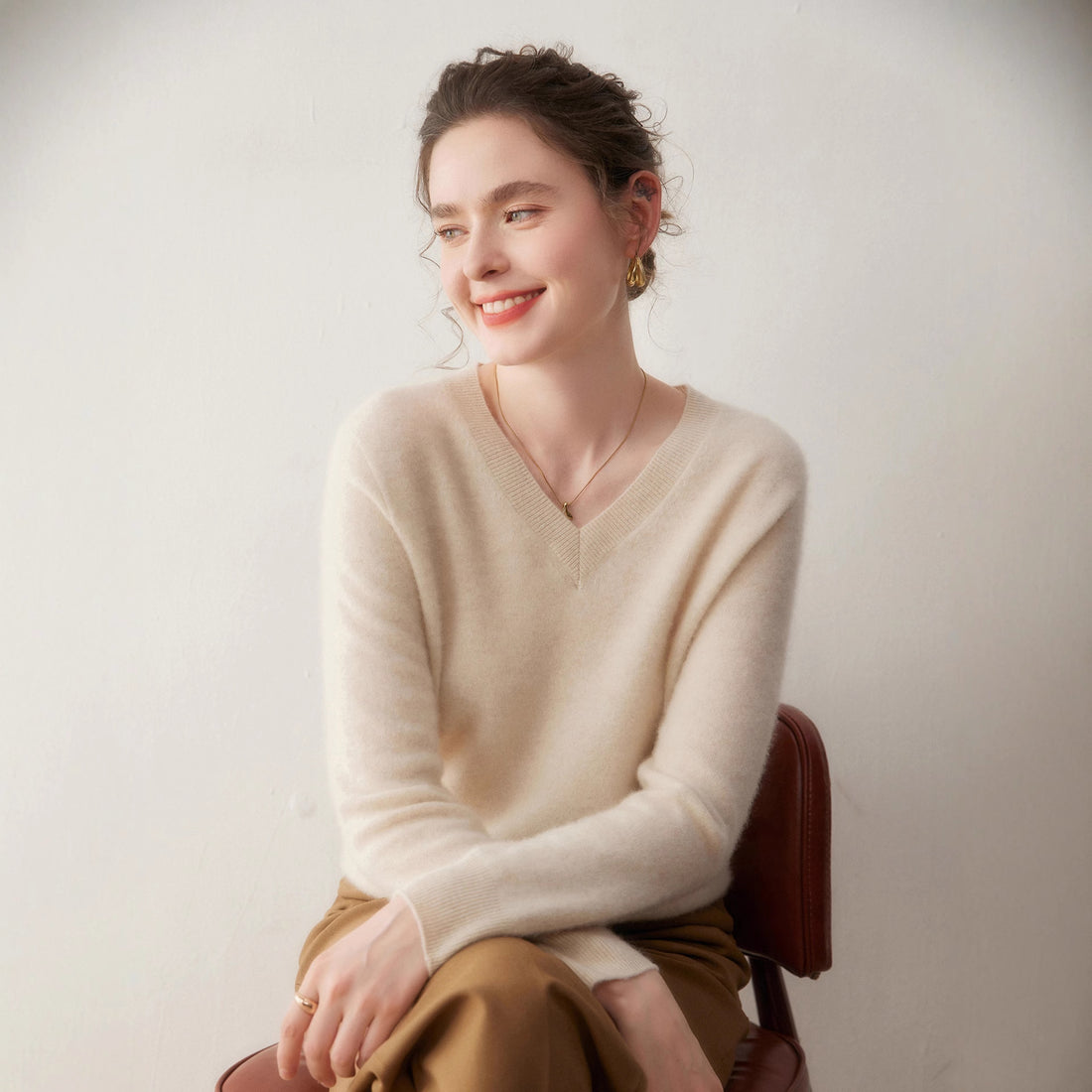 100% Pure Cashmere V-Neck Women’s Sweater – Slim Fit, Soft and Versatile