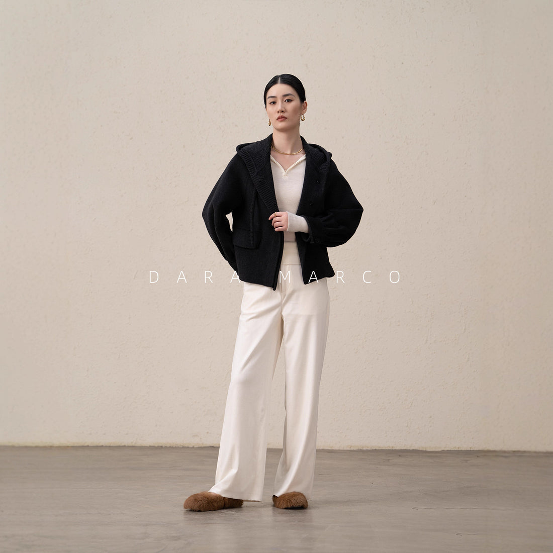 100% Wool Knit Hoodie Cardigan — Soft, Lightweight & Skin-Friendly