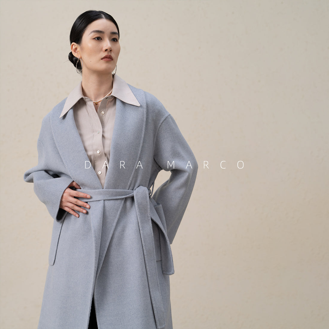 Double-Sided Cashmere Mid-Length Coat with Large Lapel Tie – Autumn Winter