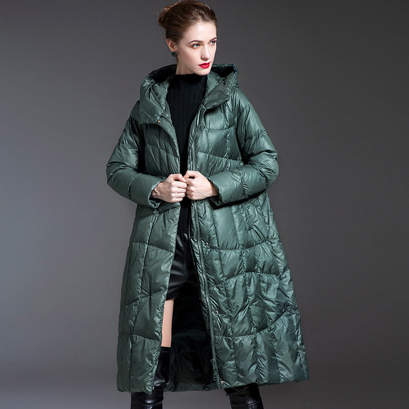 Step boldly into winter with the 2025 Winter New Fashion White Duck Down Jacket for Women — a luxurious mid-length, over-the-knee masterpiece designed to keep you warm even in the harshest cold.
