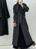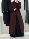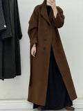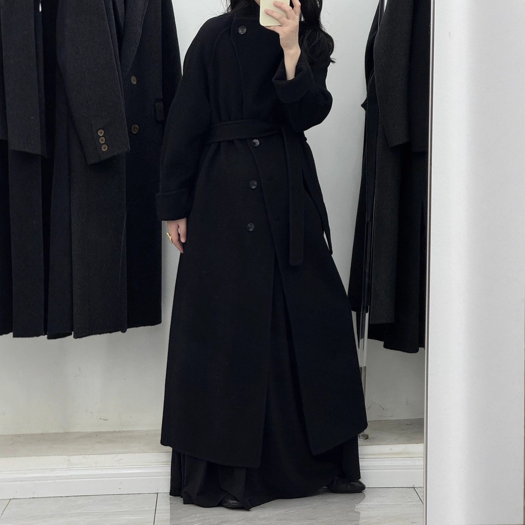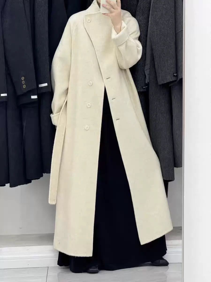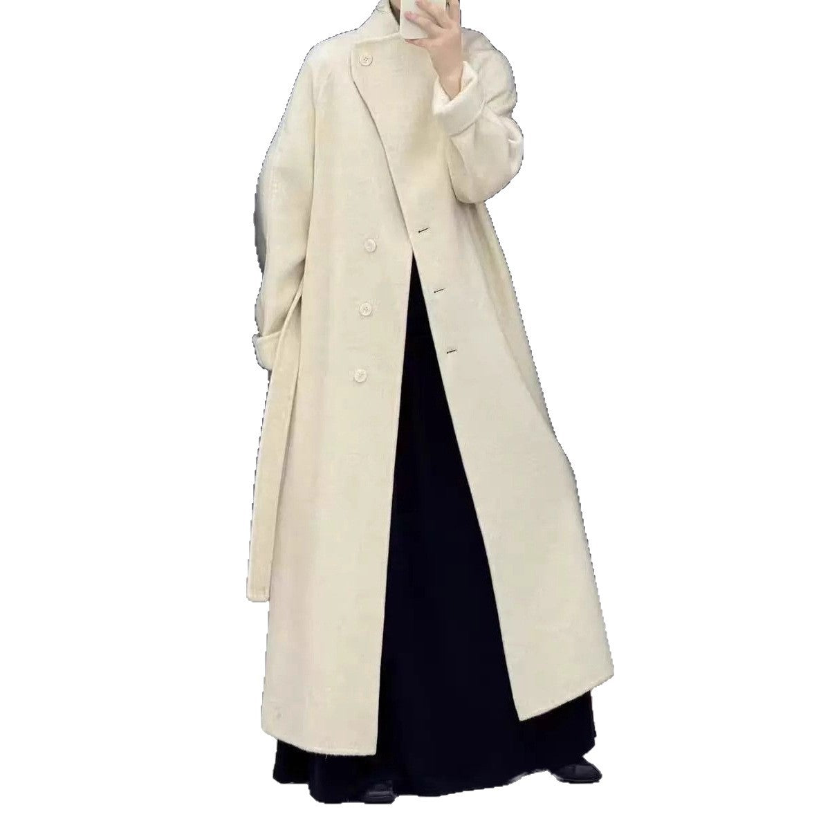 Long Wool Coat for Women – Turn-Down Collar Loose Korean Style Double-Sided Wool Jacket