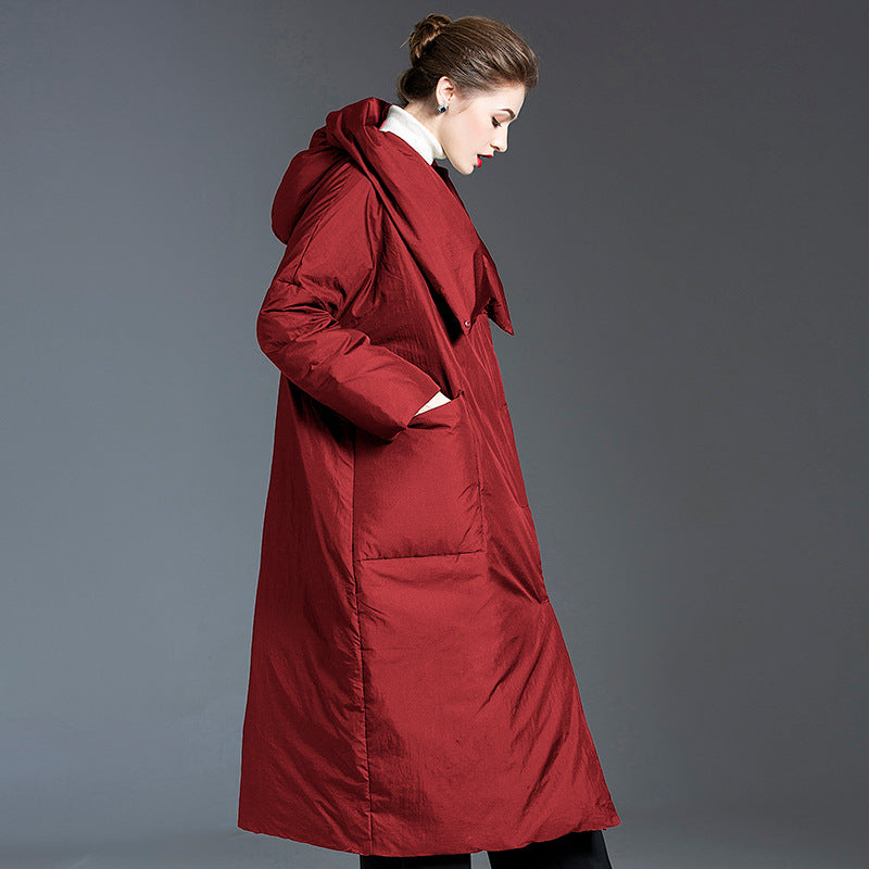 The over-the-knee length adds dramatic flair and full-body warmth, making every step feel like walking inside your own heated bubble. Available in classic black and gorgeous wine red, it easily elevates any winter outfit—from casual streetwear to elegant city looks.