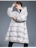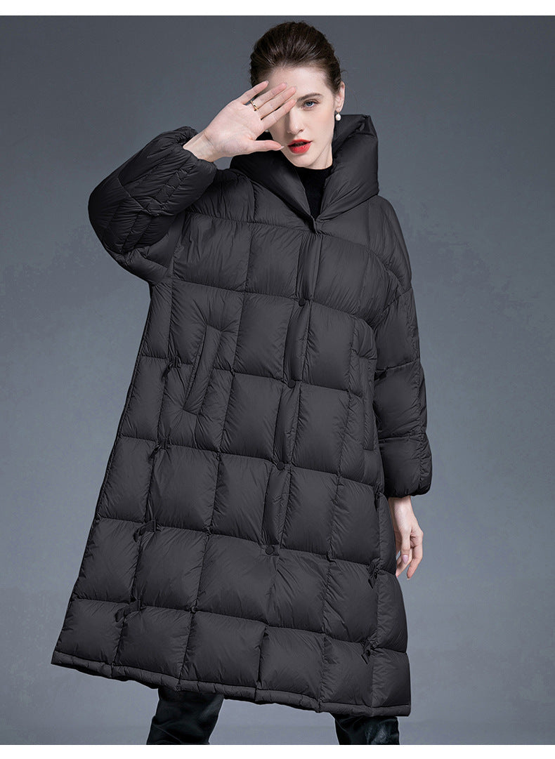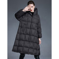 The loose-fit silhouette effortlessly slims the figure while offering maximum comfort, and the non-removable cozy hood provides extra protection from wind, snow, and chilly air. Its refined mid-length design elongates your shape, bringing a sleek, elegant winter look that works with any outfit.