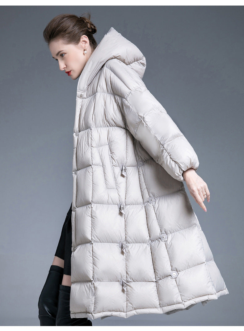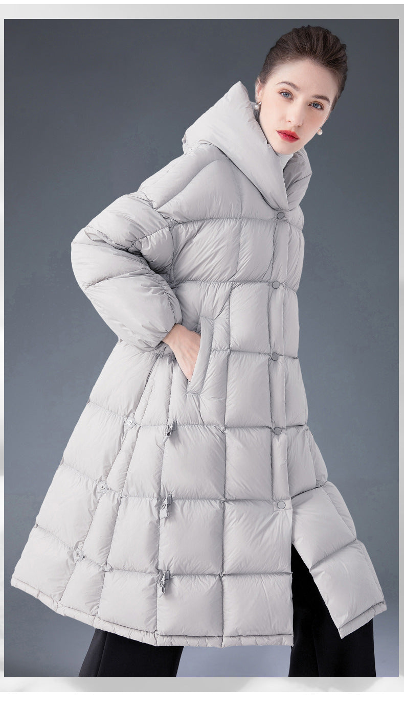 Made with 90% premium white duck down, this coat delivers extraordinary insulation—lightweight yet incredibly warm, like being hugged by a cloud on the coldest winter nights.
