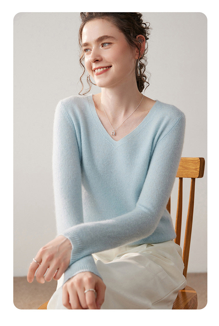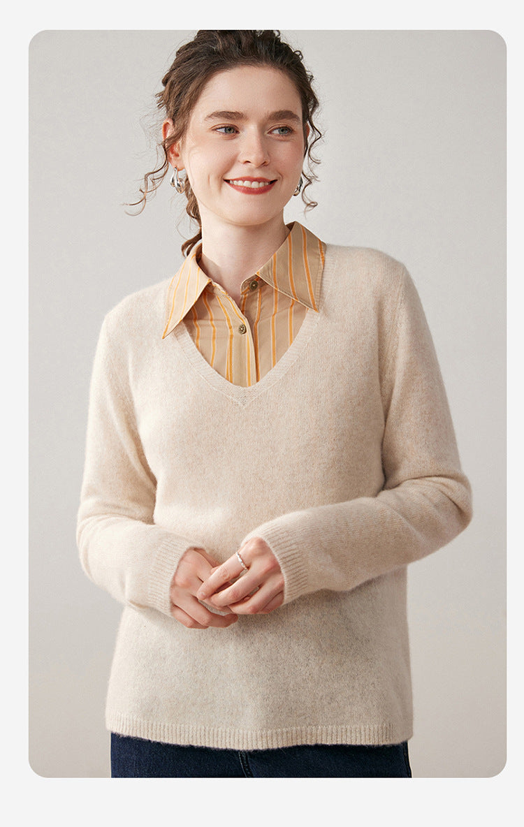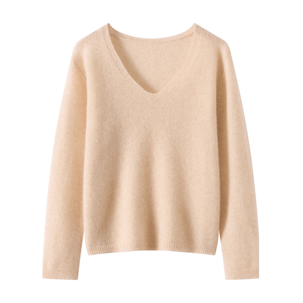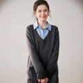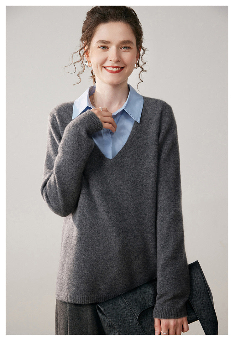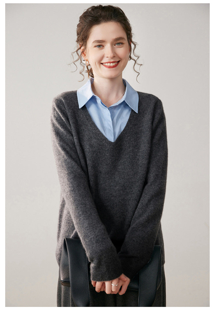 Cashmere V-Neck Plus-Size Sweater – Soft, Free-Fit Warm Base Layer for Women