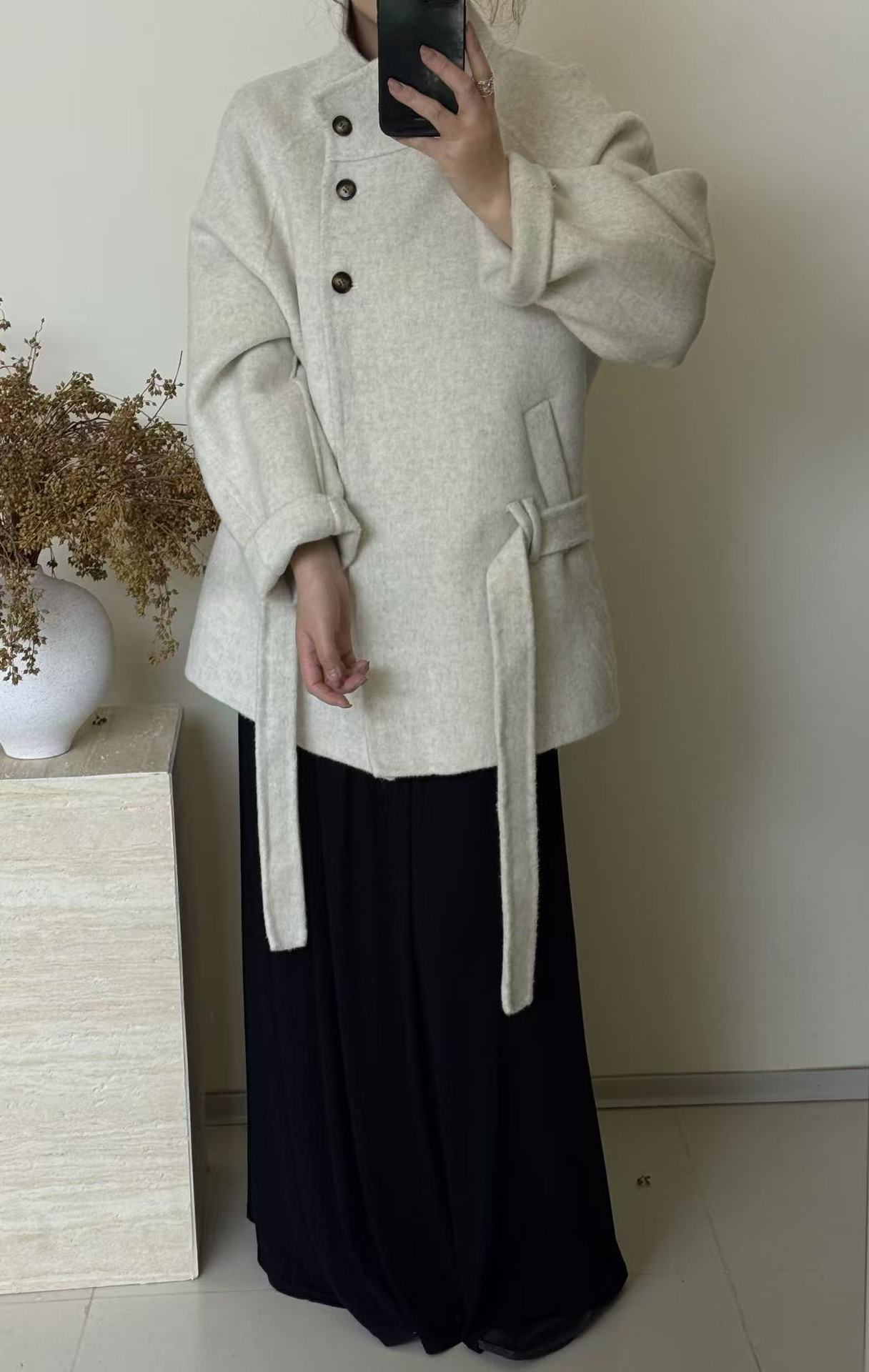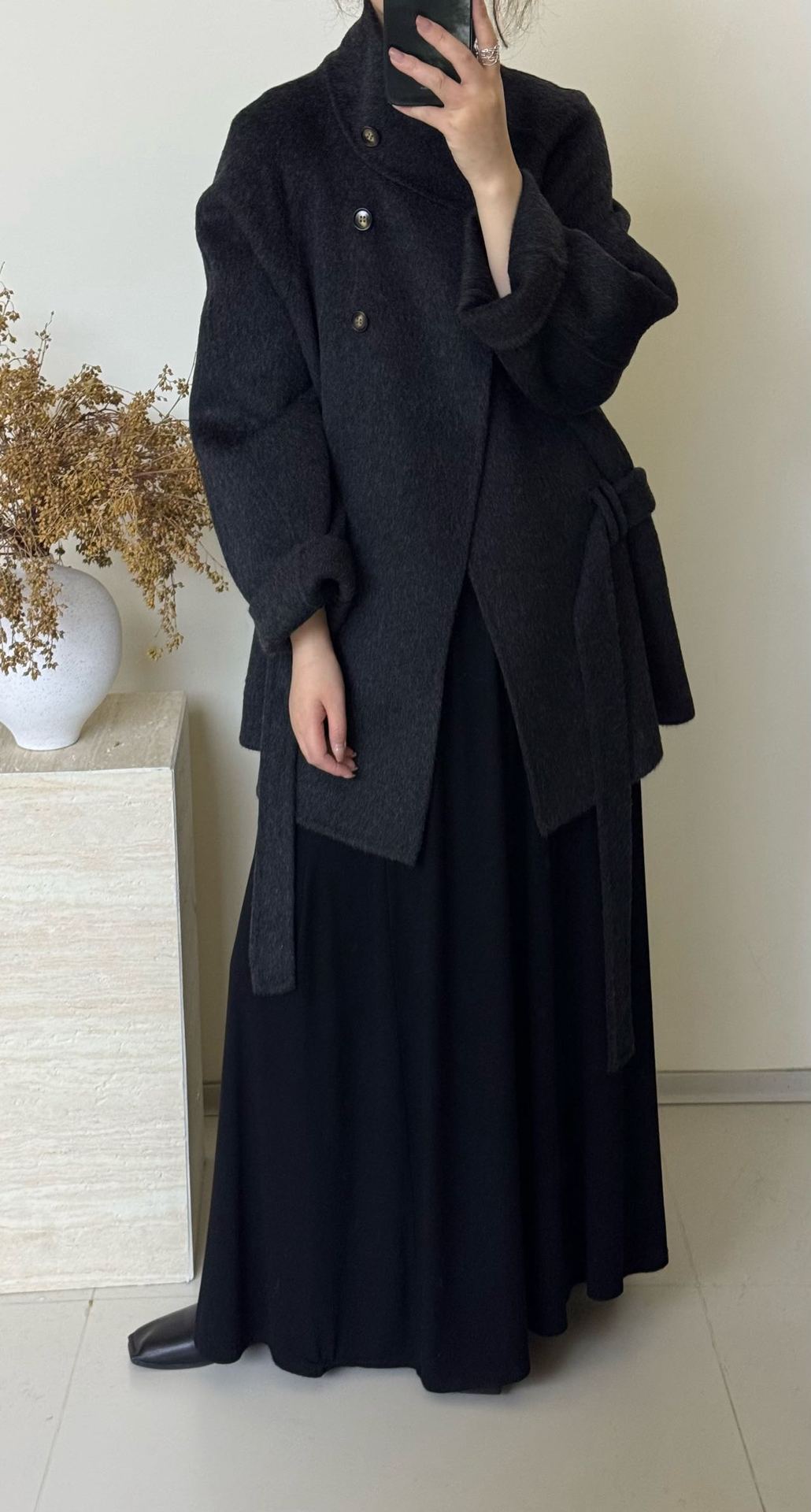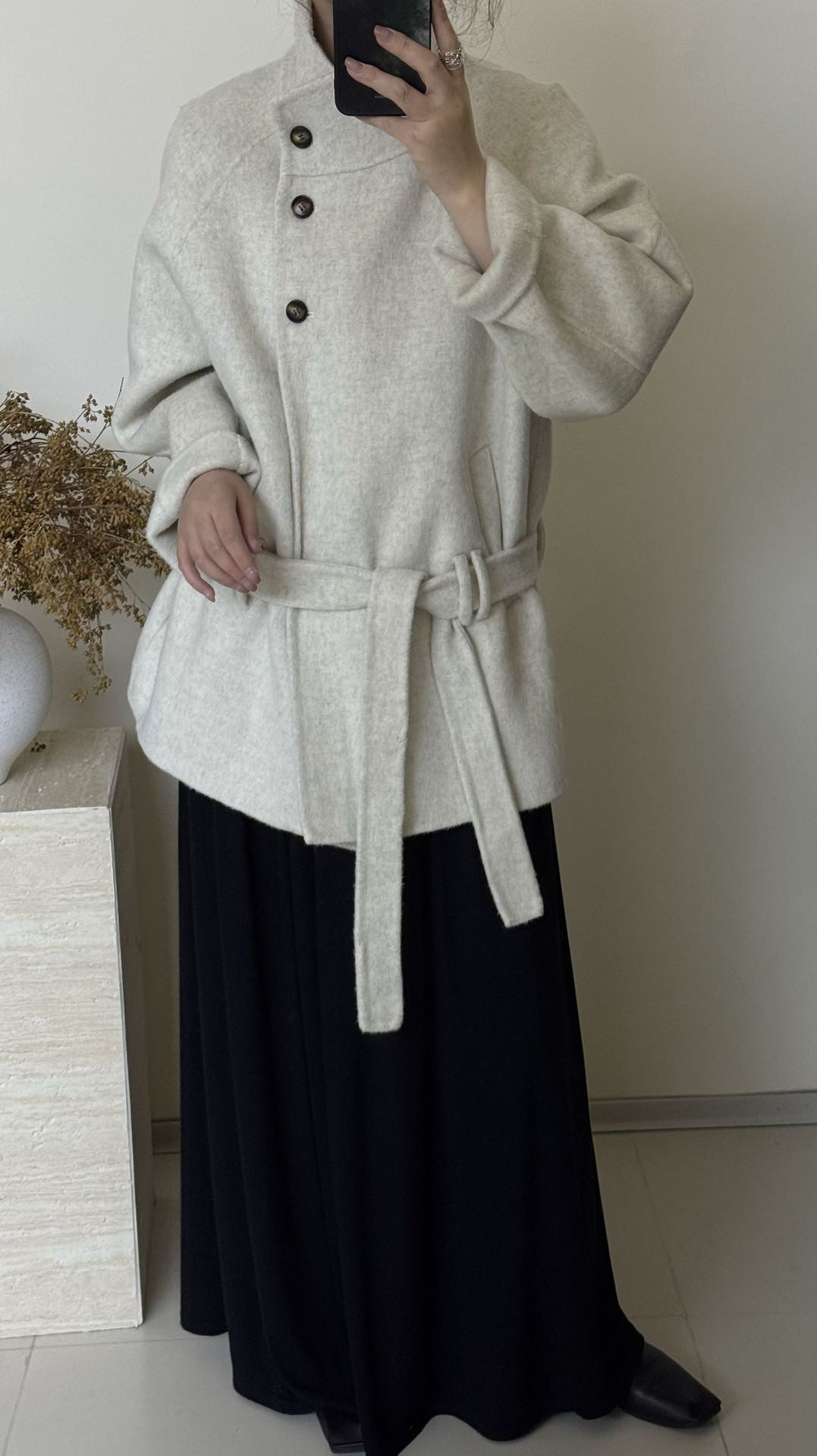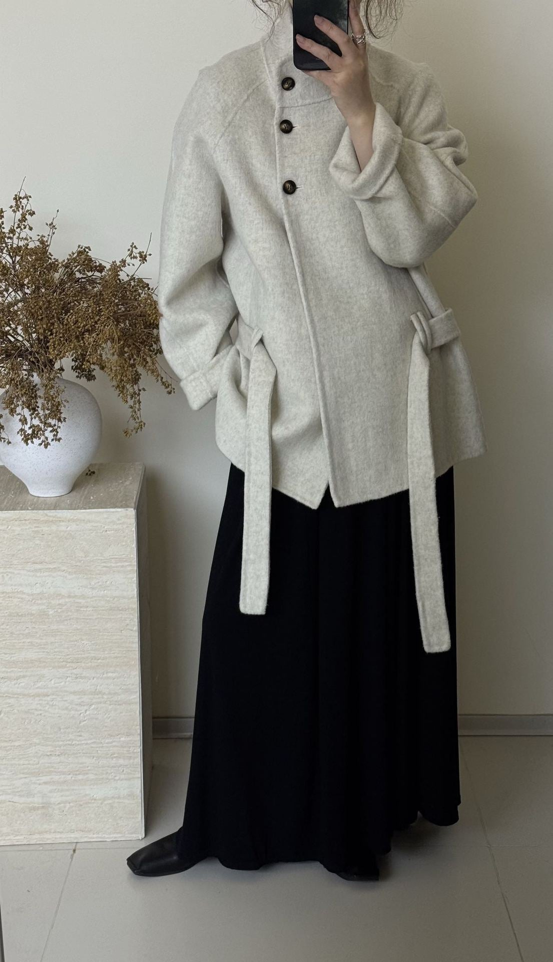 Crafted with high-quality double-sided wool, this coat offers exceptional warmth and a refined texture. It delivers a soft, comfortable feel while maintaining structure and elegance.