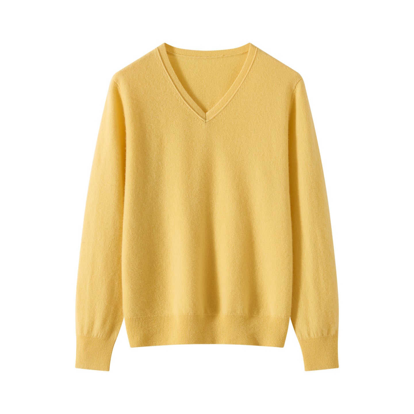 Experience the gentle luxury of a beautifully crafted cashmere sweater designed to bring warmth, softness, and elegance into every moment. This refined V-neck silhouette offers a naturally flattering look, enhancing your posture and adding a touch of graceful femininity to your outfit.