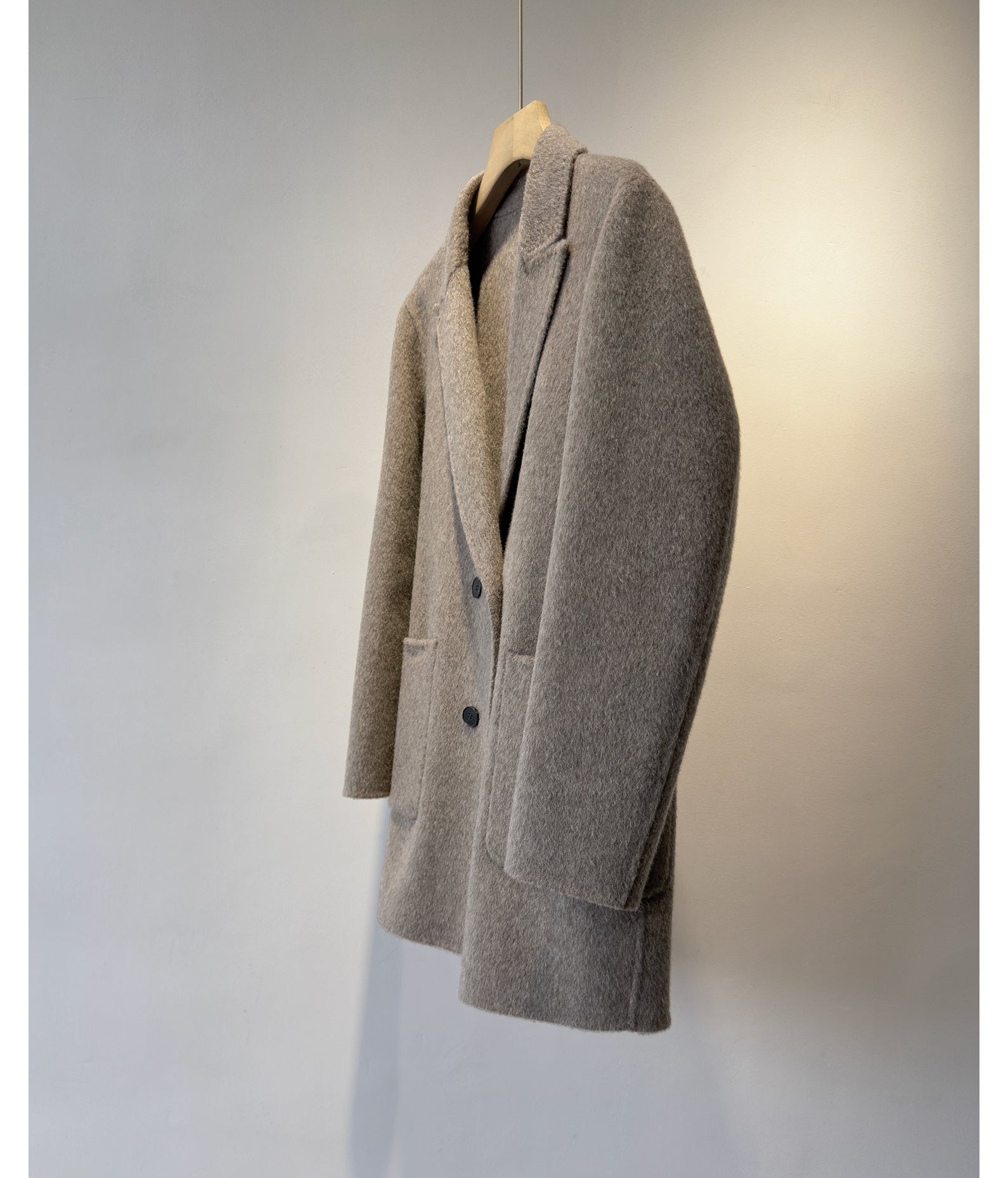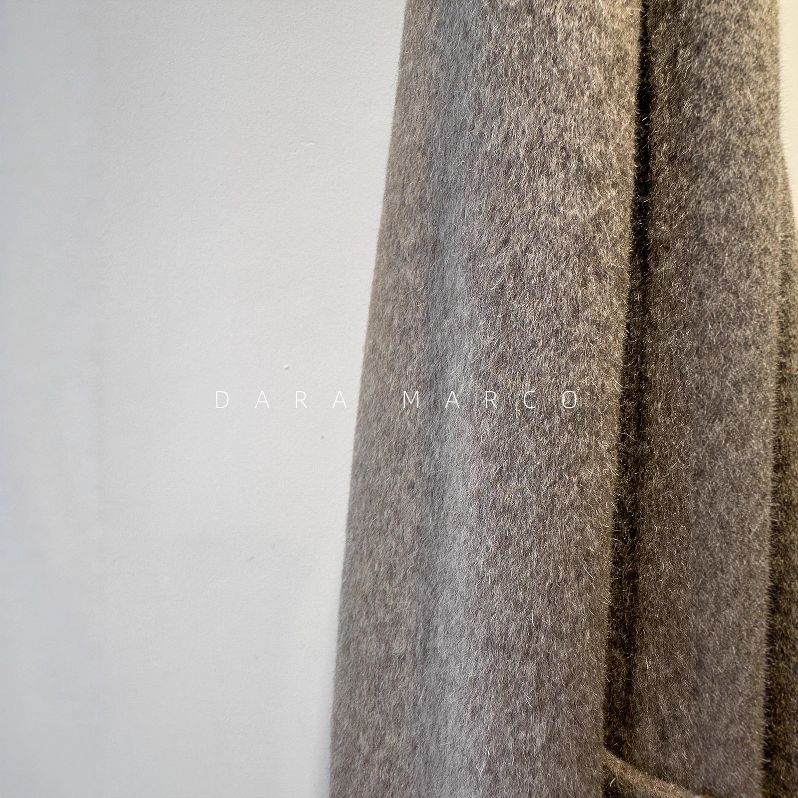 • Crafted from a refined blend of Peruvian alpaca and superfine Merino wool, this reversible coat delivers a soft yet architectural hand feel—light, warm, and exceptionally breathable.