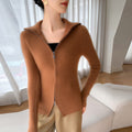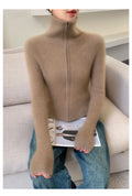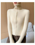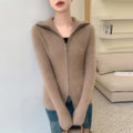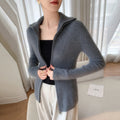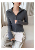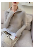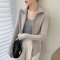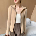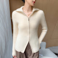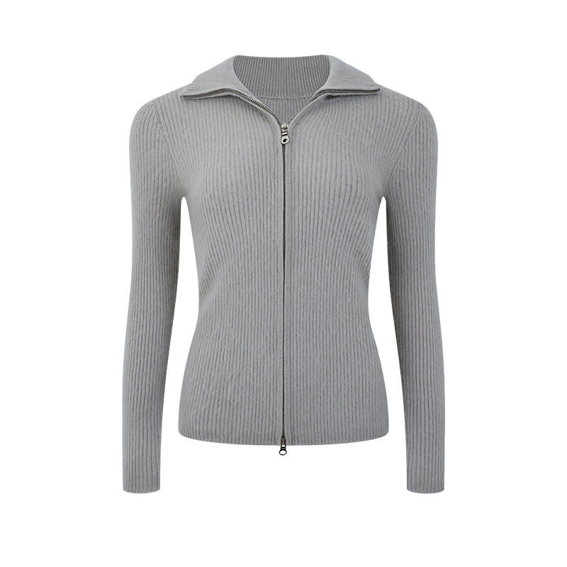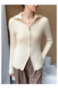 Cashmere Cardigan – 100% Pure Cashmere Double Zipper Turn-Down Collar Jacket
