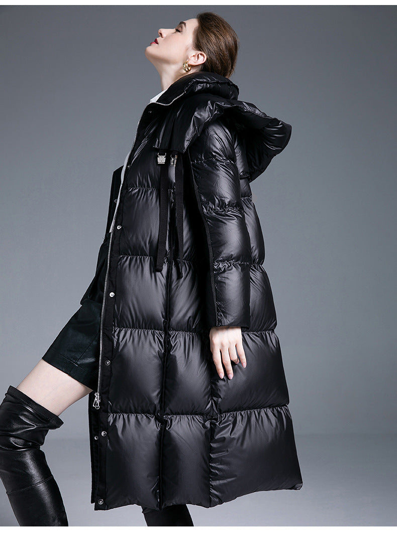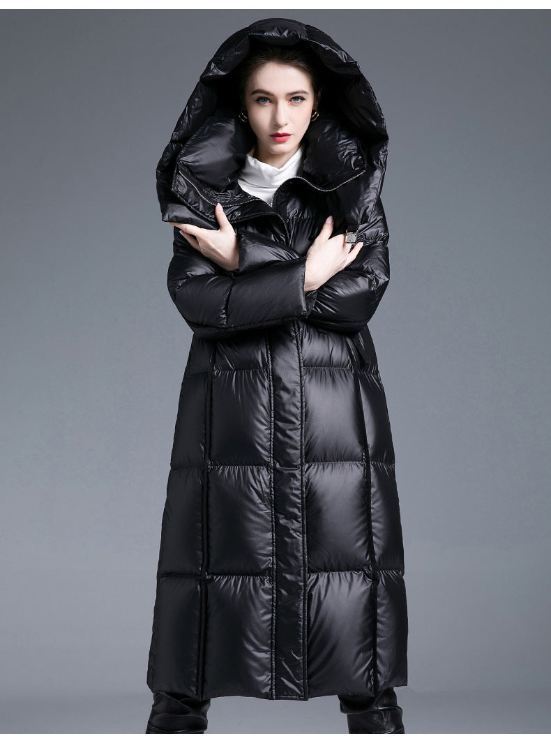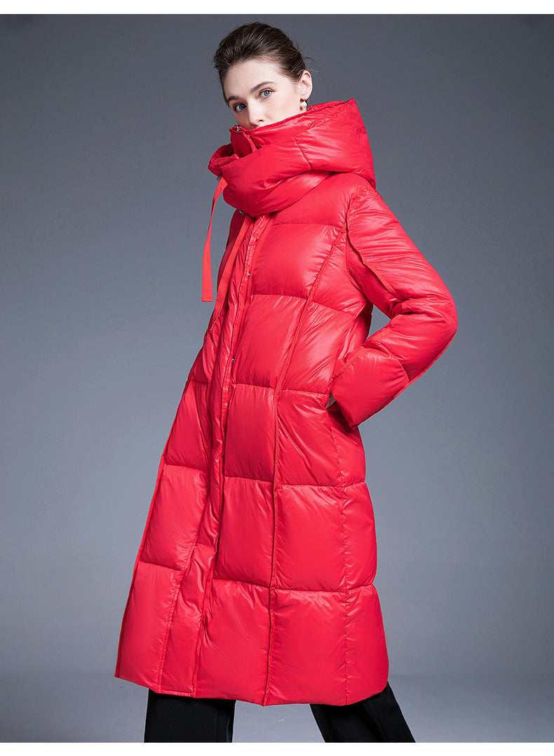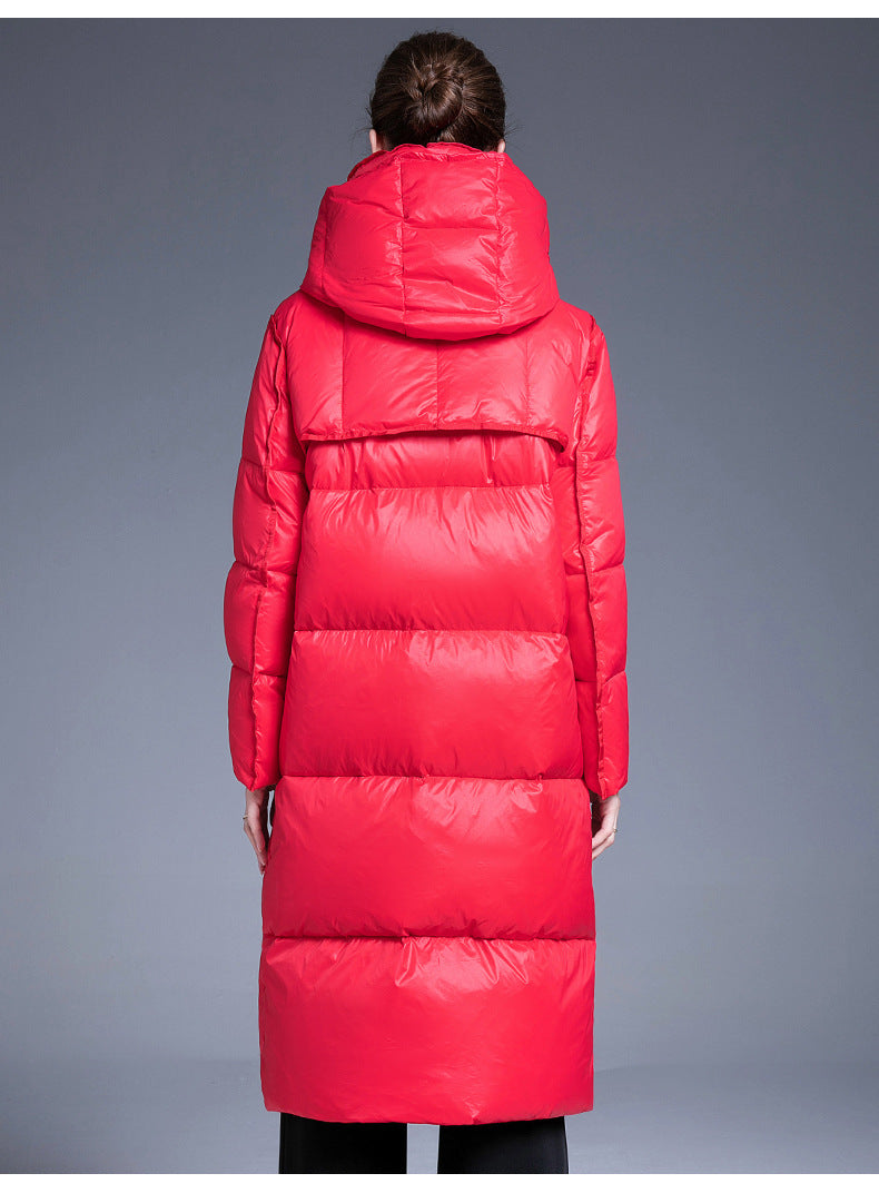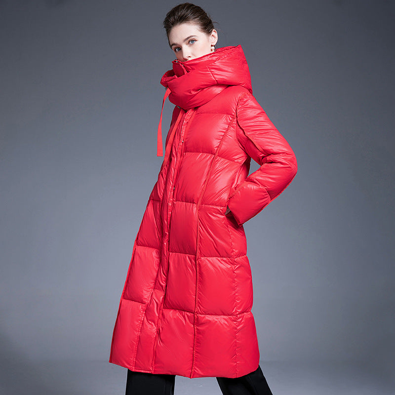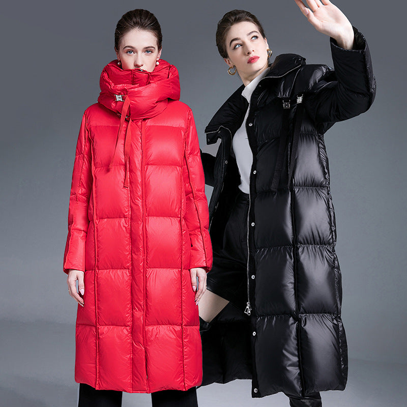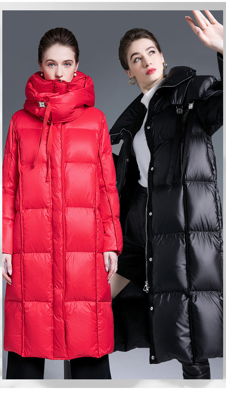 Down Jacket Women’s Thickened 90% White Duck Down Winter Coat - Hooded Long Mid-Length Casual Style
