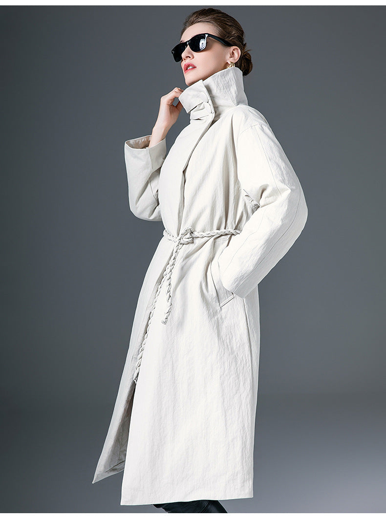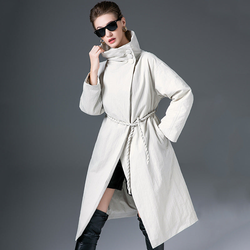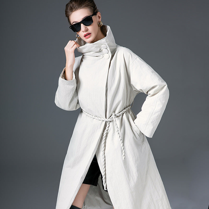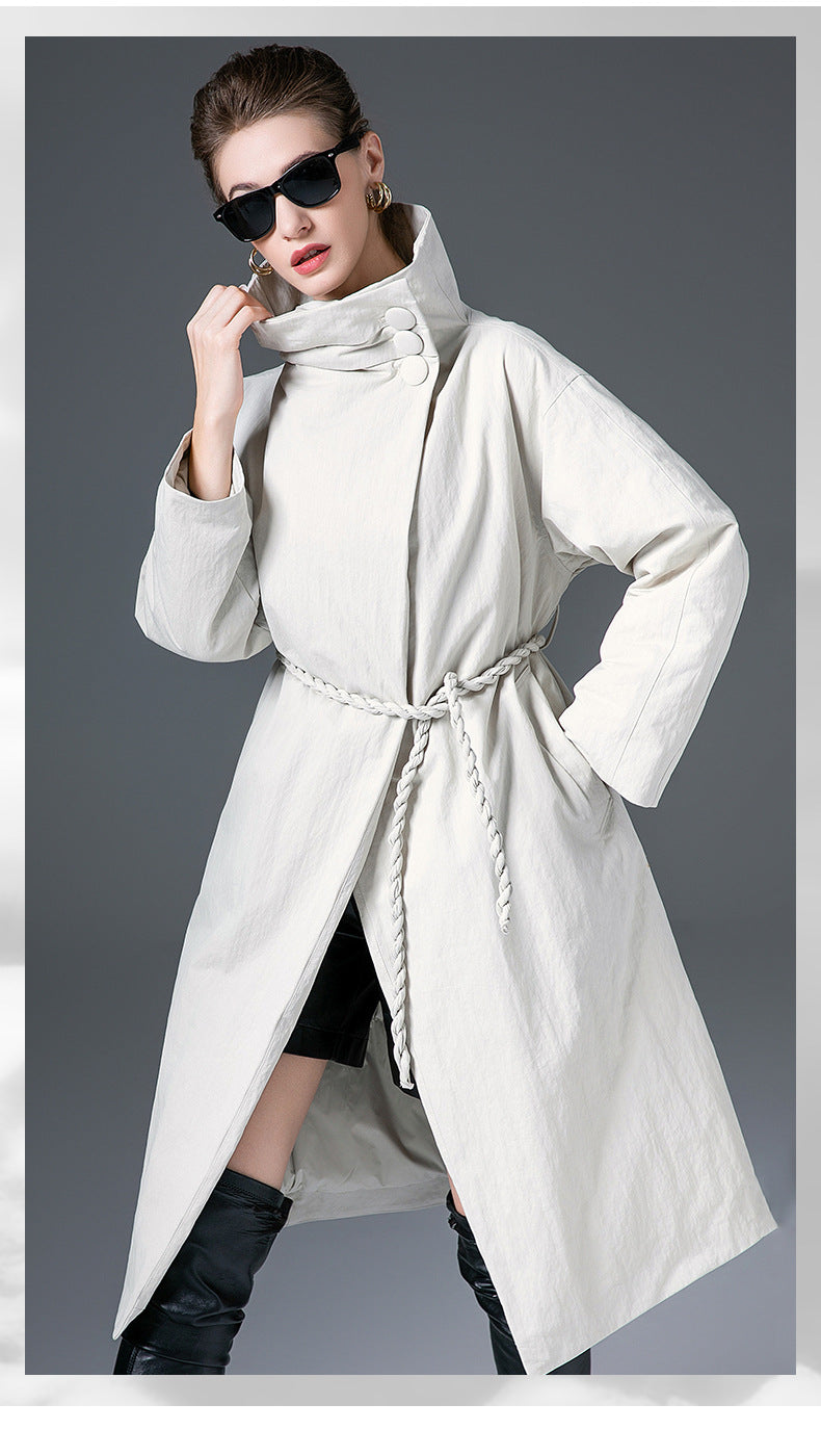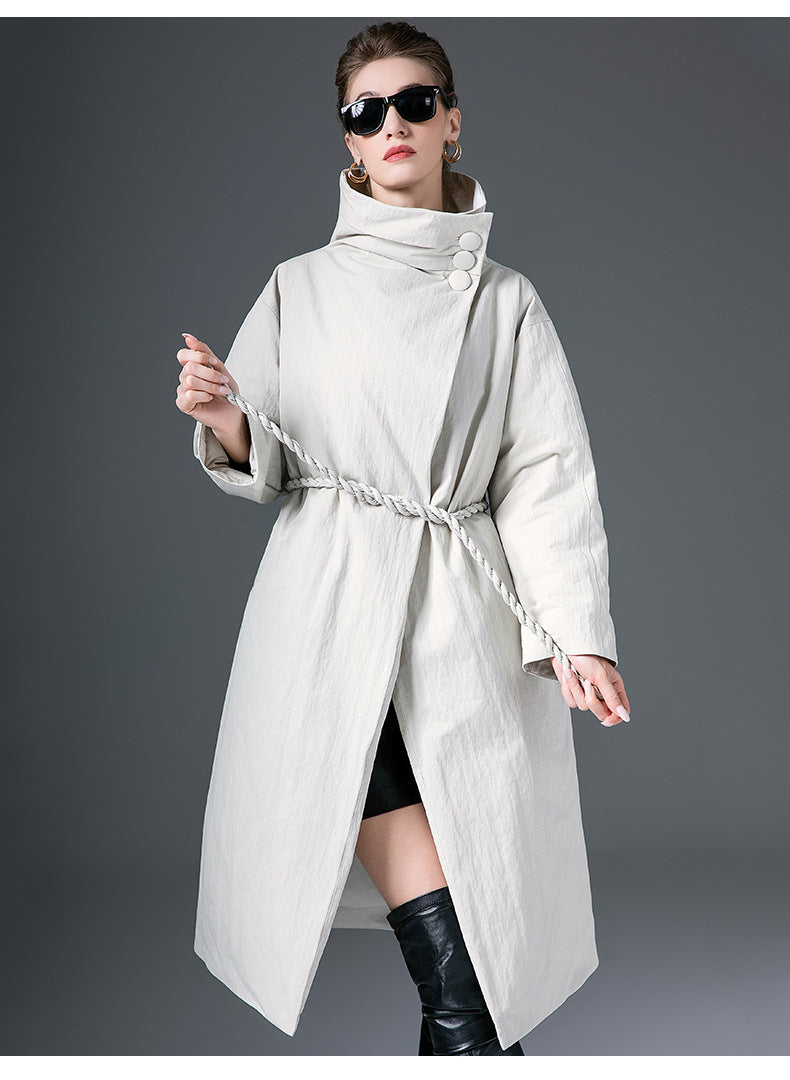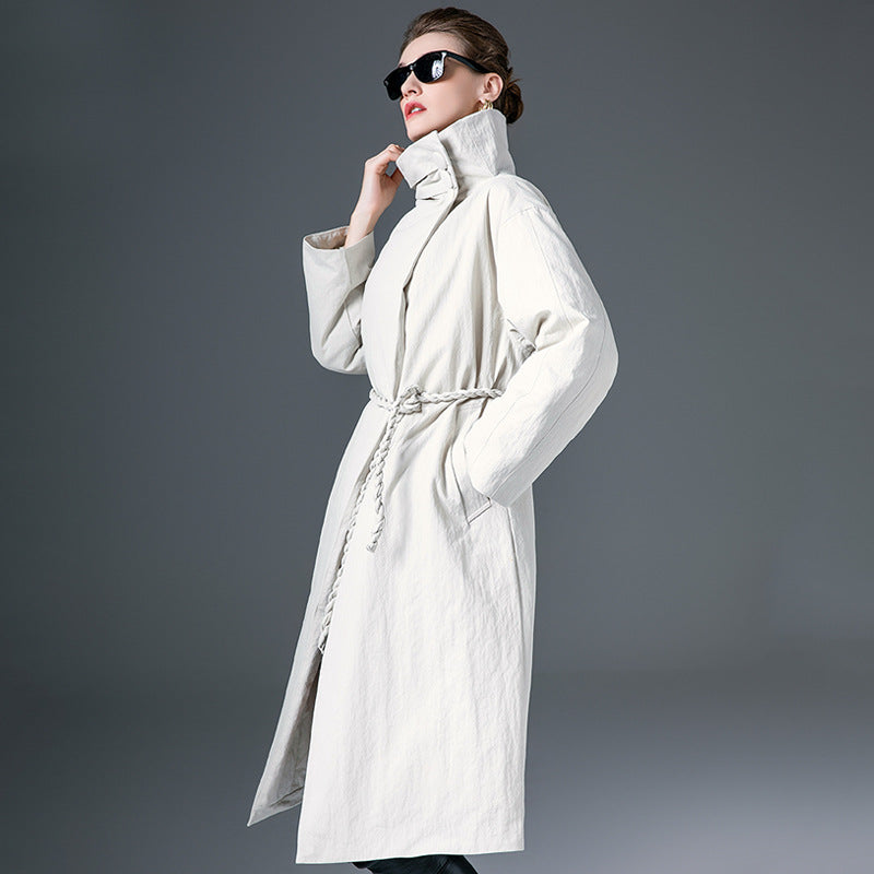 Down Jacket Women’s Stand Collar Long Coat – Thickened 90% White Duck Down Winter Style