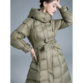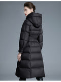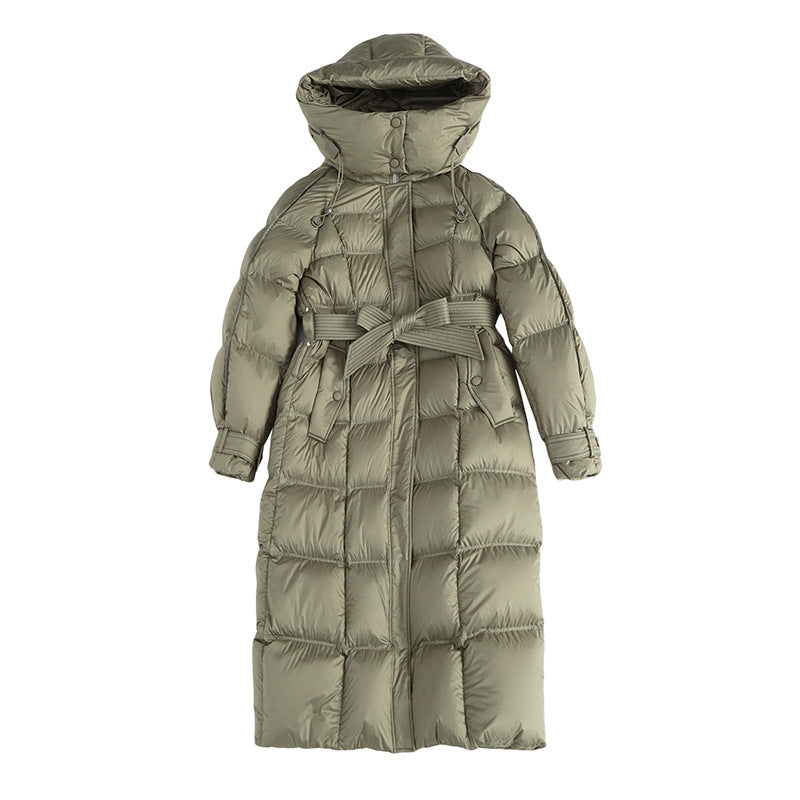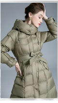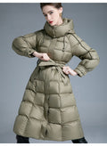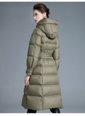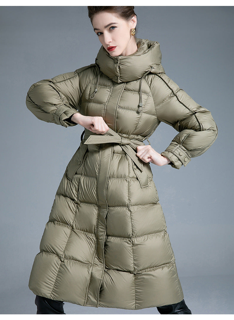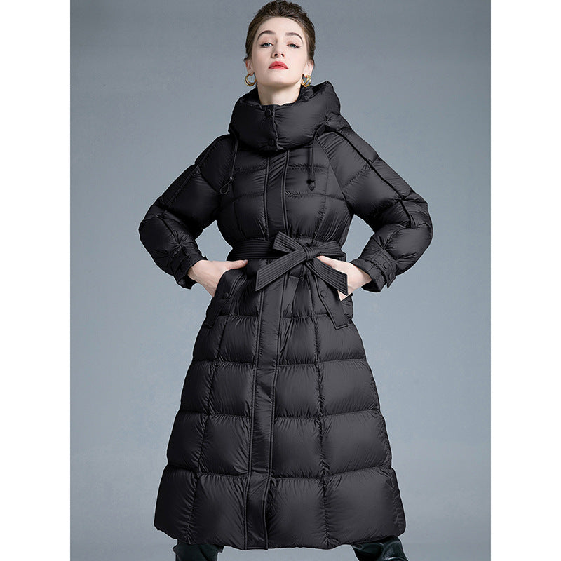 Embrace the winter season with unstoppable warmth and runway-inspired elegance in the European Station 2025 Winter New Fashion Loose Lace-Up Hooded Down Jacket for Women. This long, thickened, over-the-knee puffer coat is crafted to turn freezing days into moments of pure comfort and confidence.
