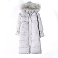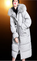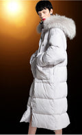 Down Jacket Women’s 90% White Duck Down Mid-Length Coat with Rabbit Fur Hood