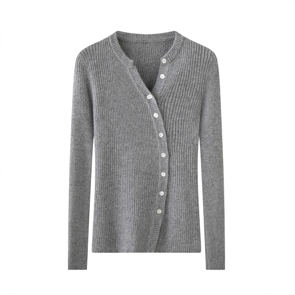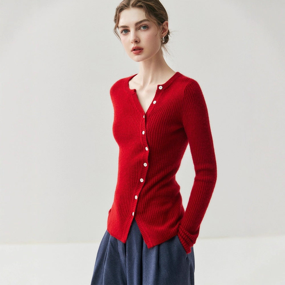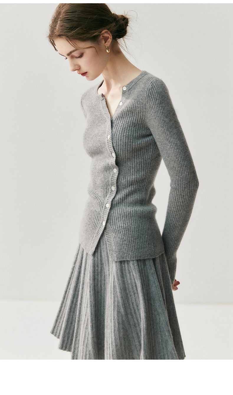 Cashmere Cardigan – French-Style Slim Fit 100% Pure Cashmere Knitted Sweater