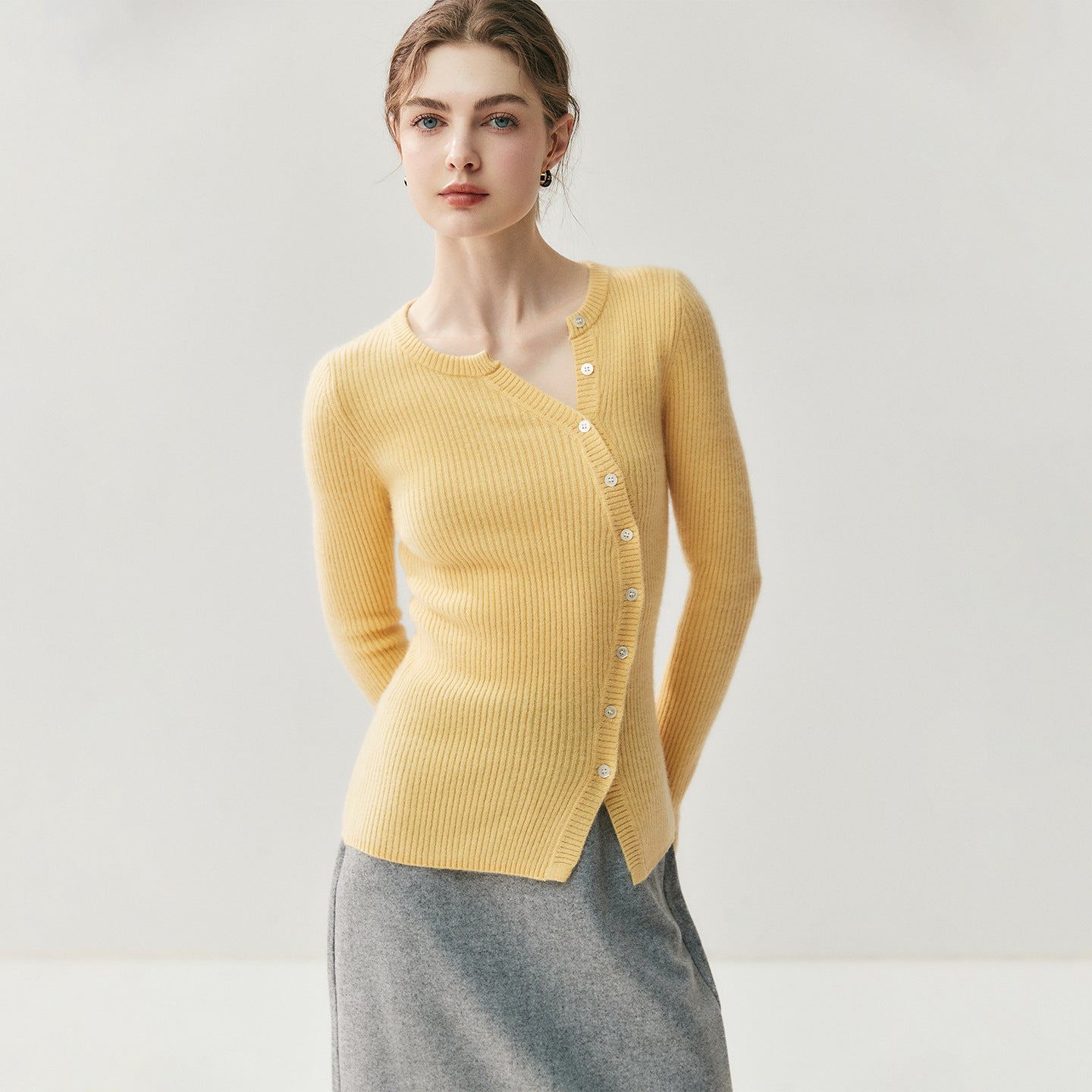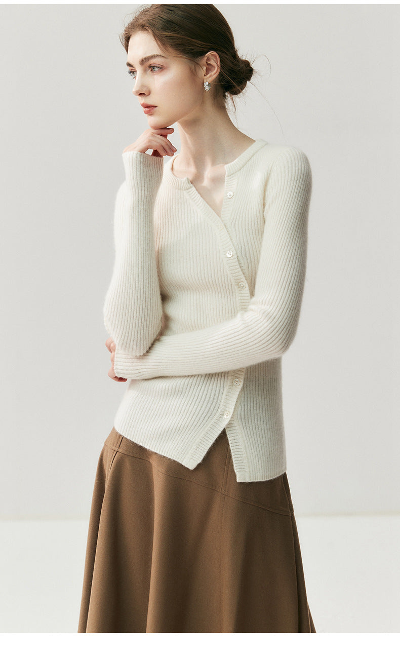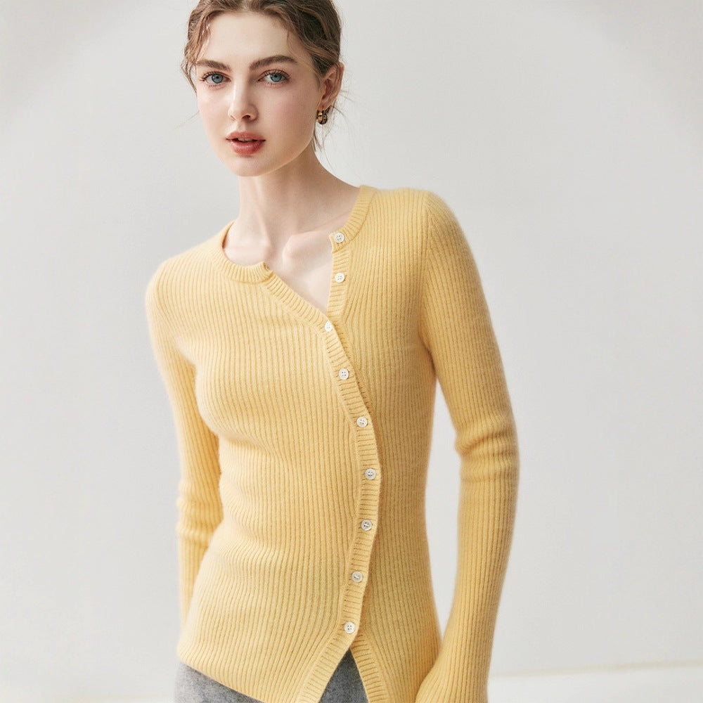 Cashmere Cardigan – French-Style Slim Fit 100% Pure Cashmere Knitted Sweater