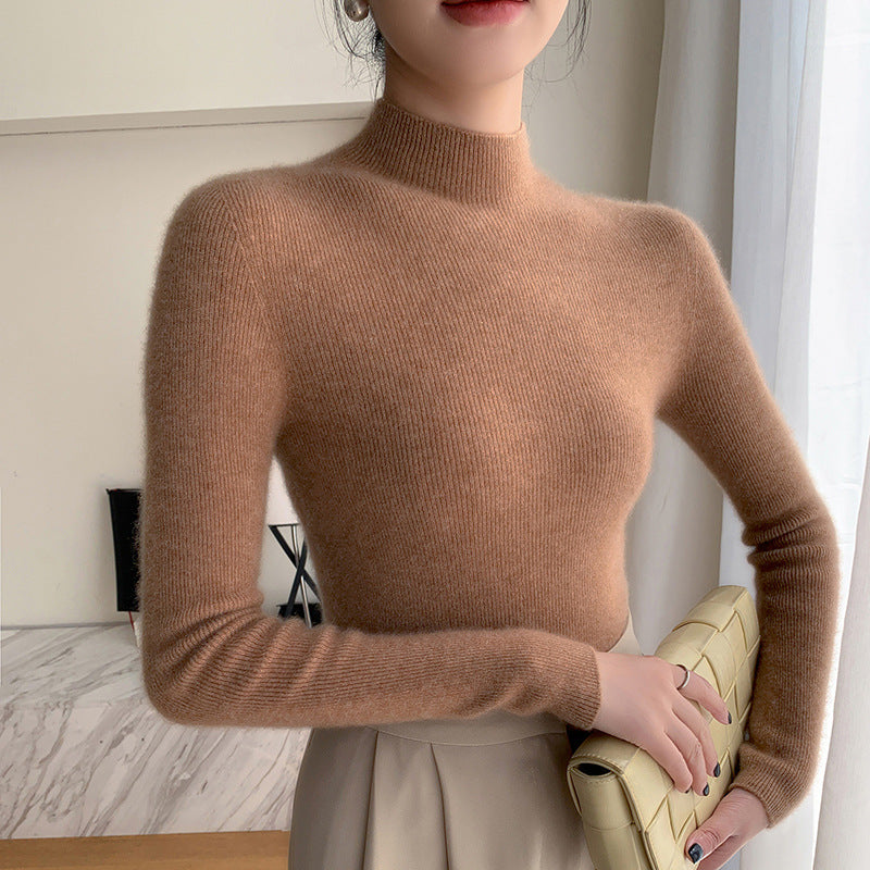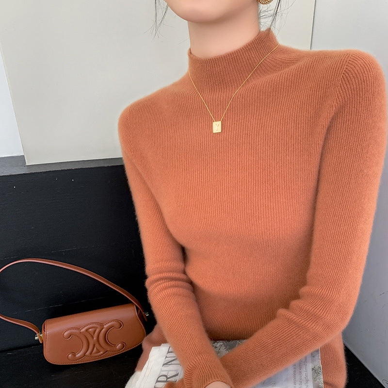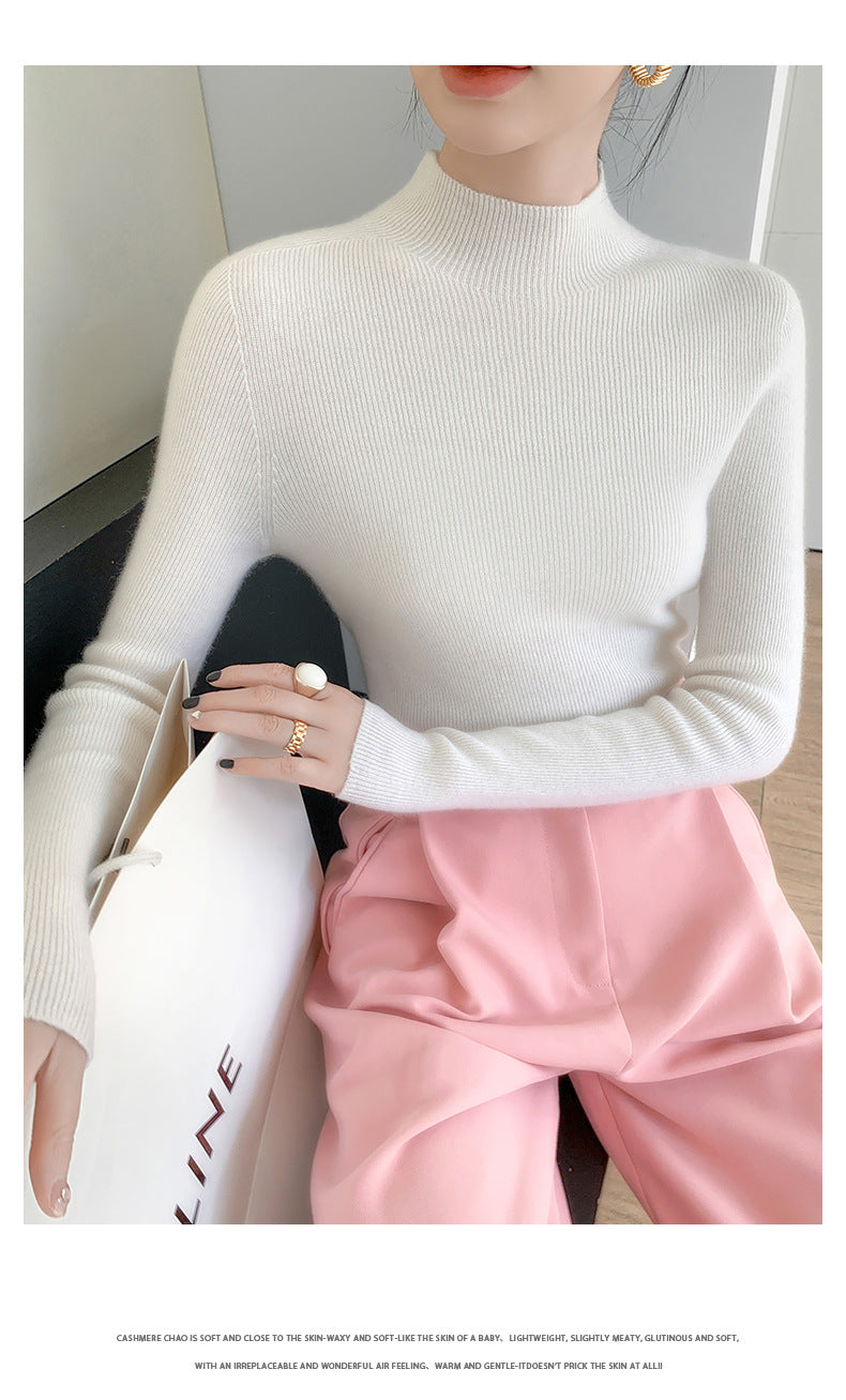 • The half turtleneck design frames your face elegantly, offering both visual lift and warmth, perfect for fall/winter layering without bulk.