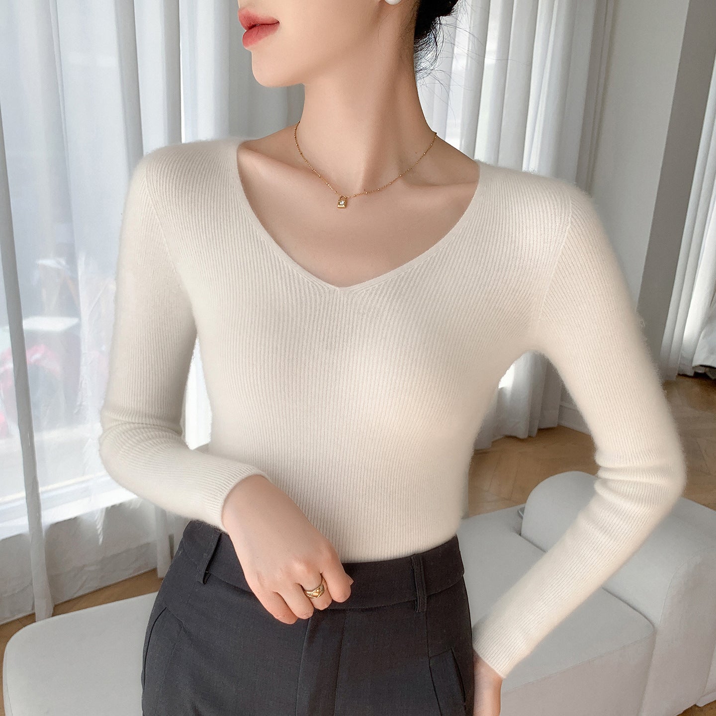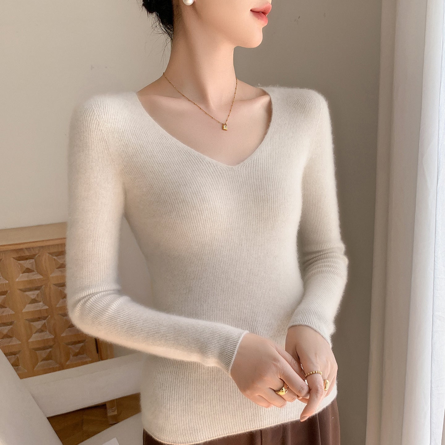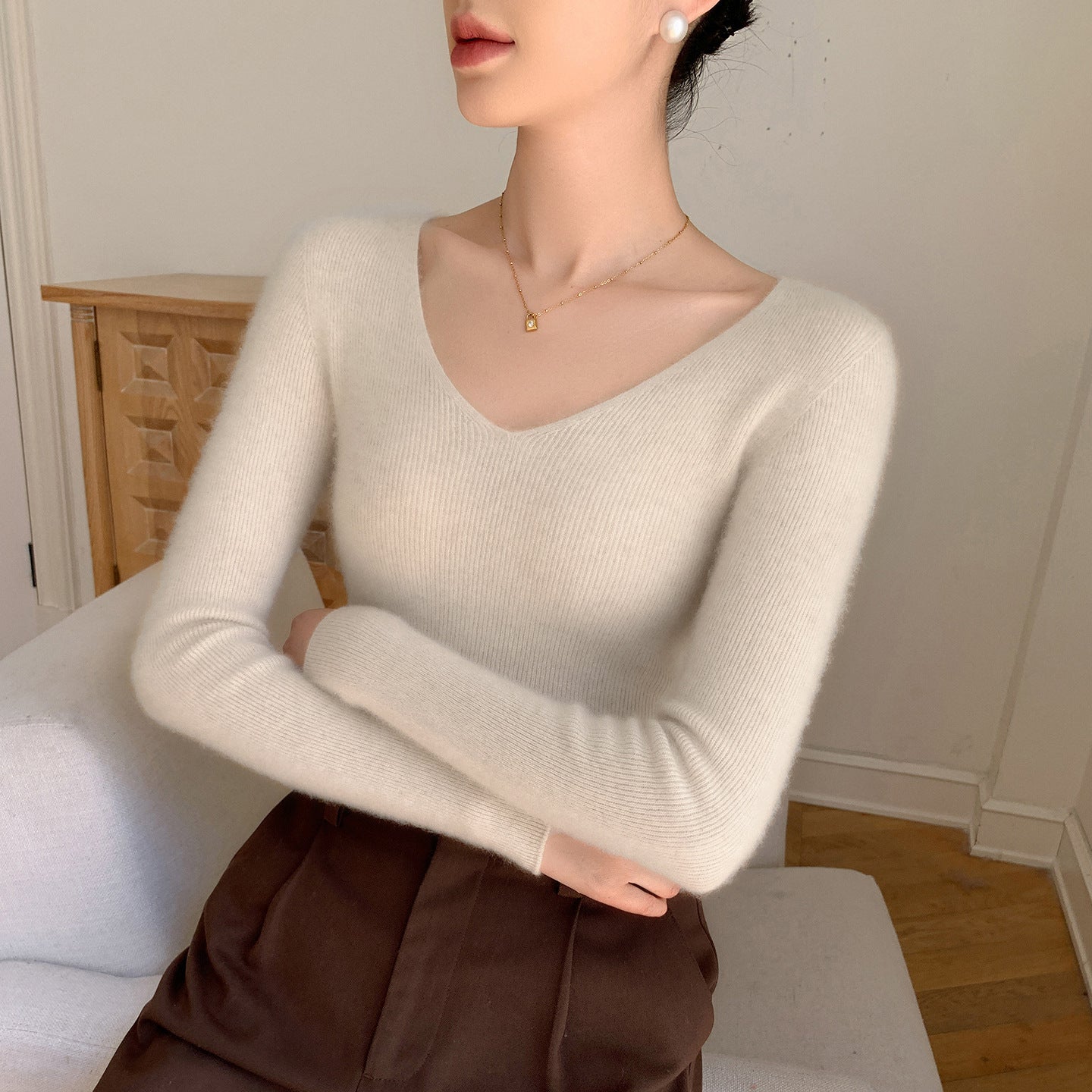 The refined V-neck visually lengthens the neckline and accentuates the collarbone, creating a gentle yet confident presence. It pairs beautifully with necklaces and layers effortlessly under coats.