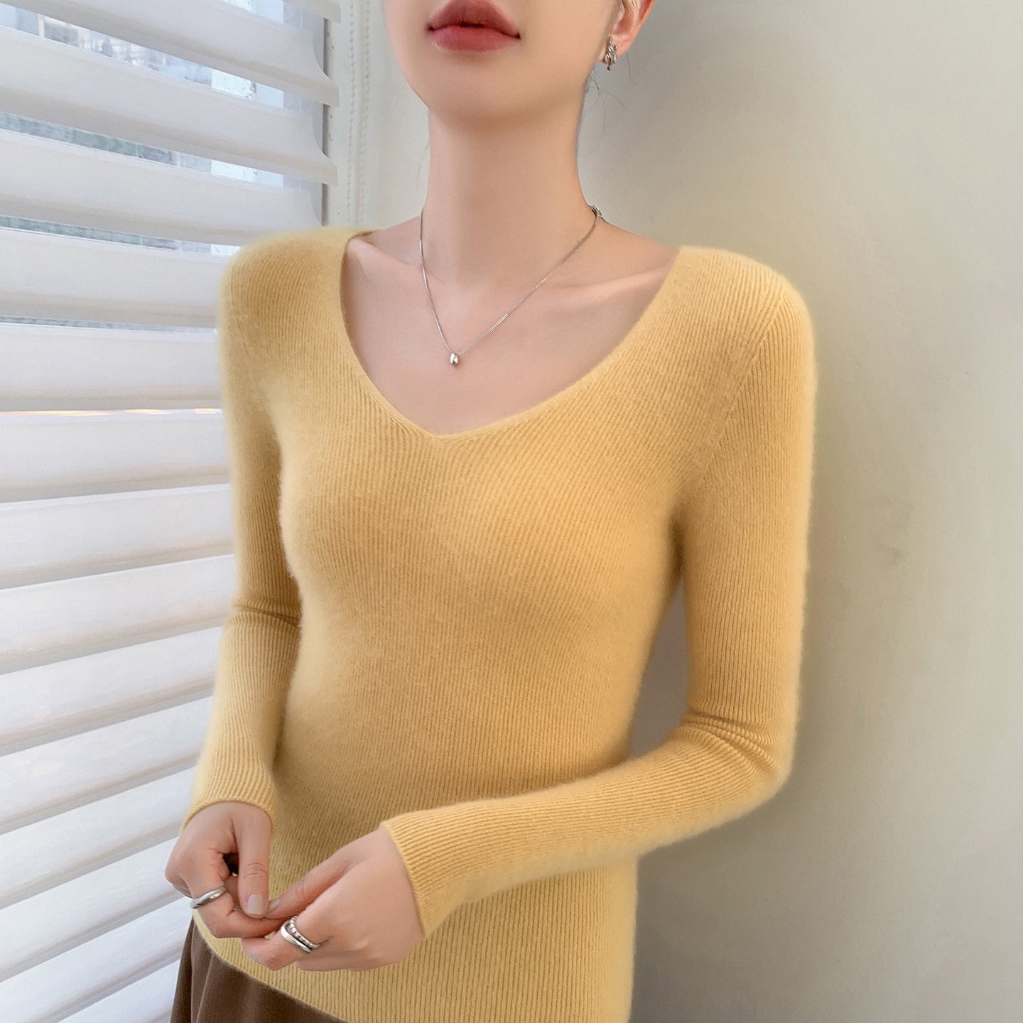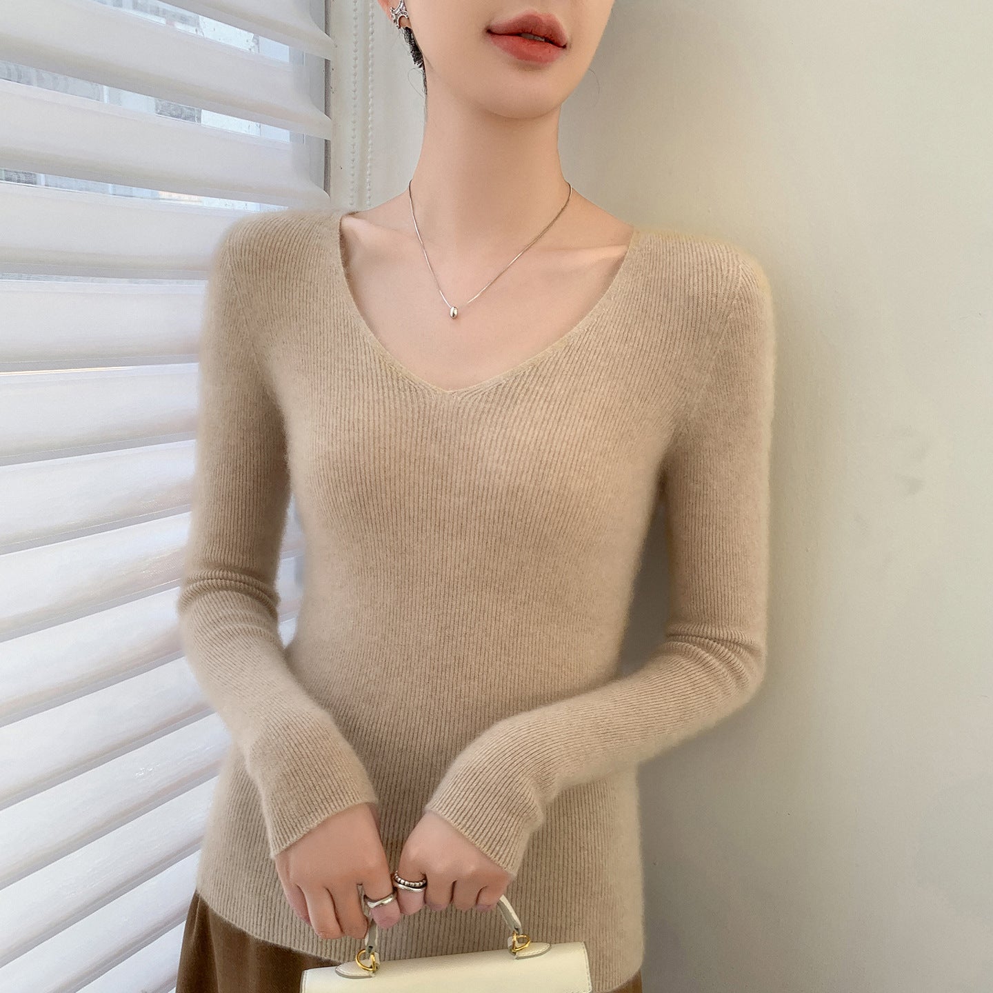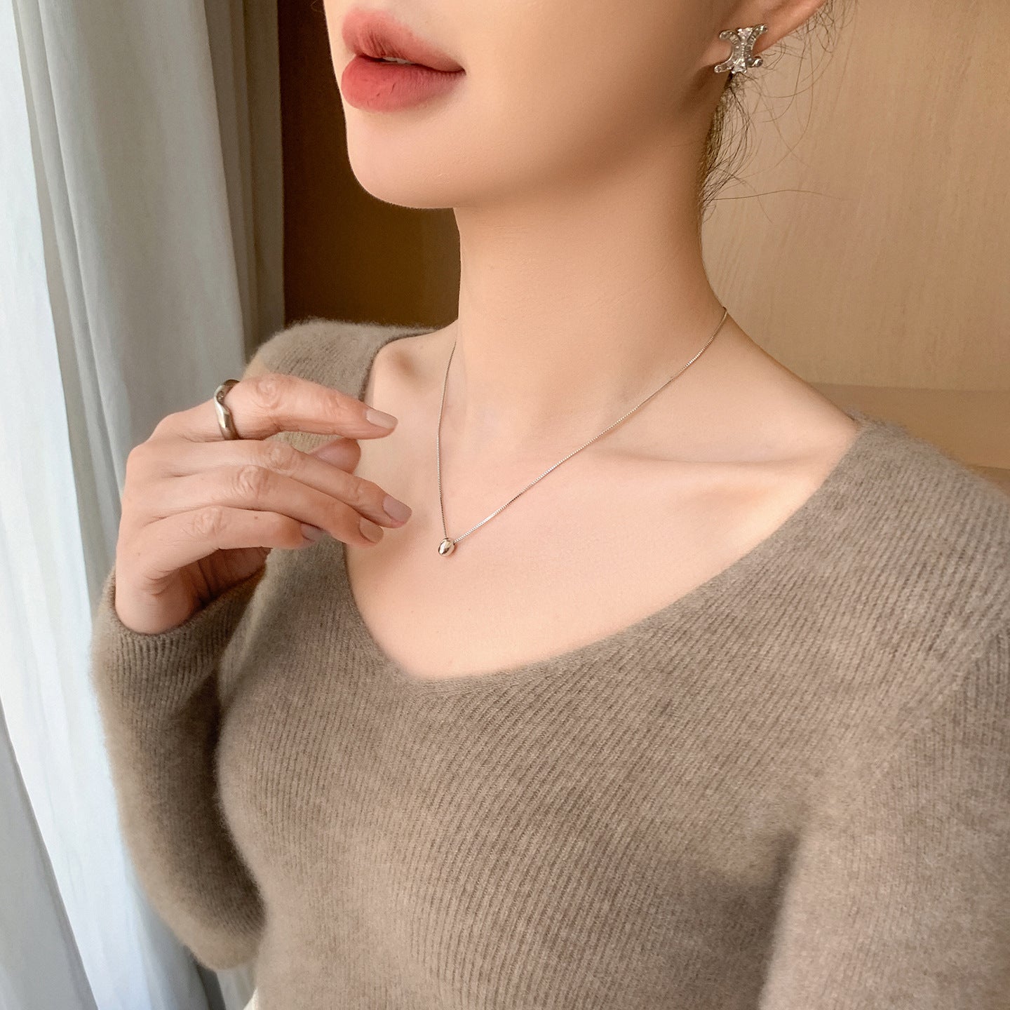 The refined V-neck visually lengthens the neckline and accentuates the collarbone, creating a gentle yet confident presence. It pairs beautifully with necklaces and layers effortlessly under coats.