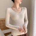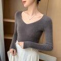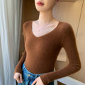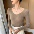 Cashmere Seamless V-Neck Sweater – Soft Pull-String Slimming Fit for Women