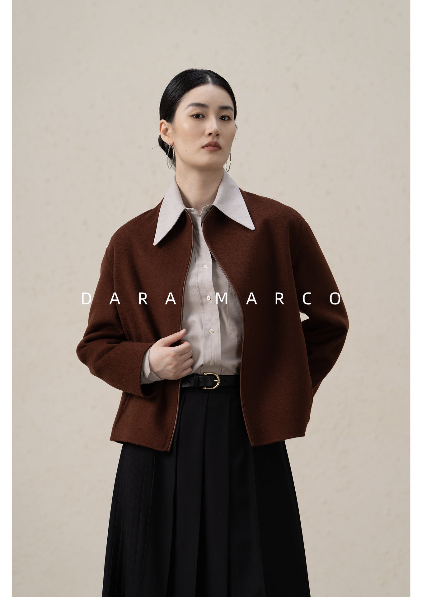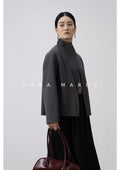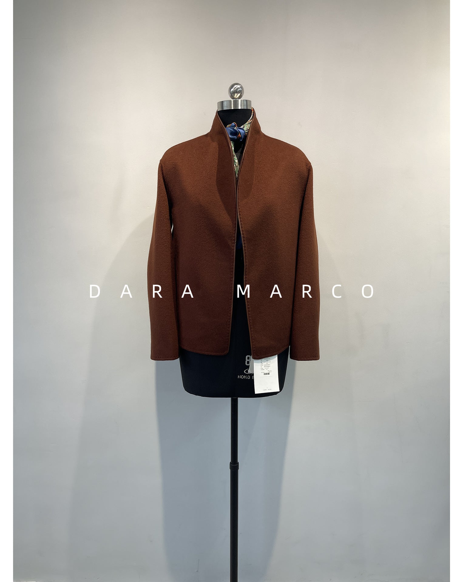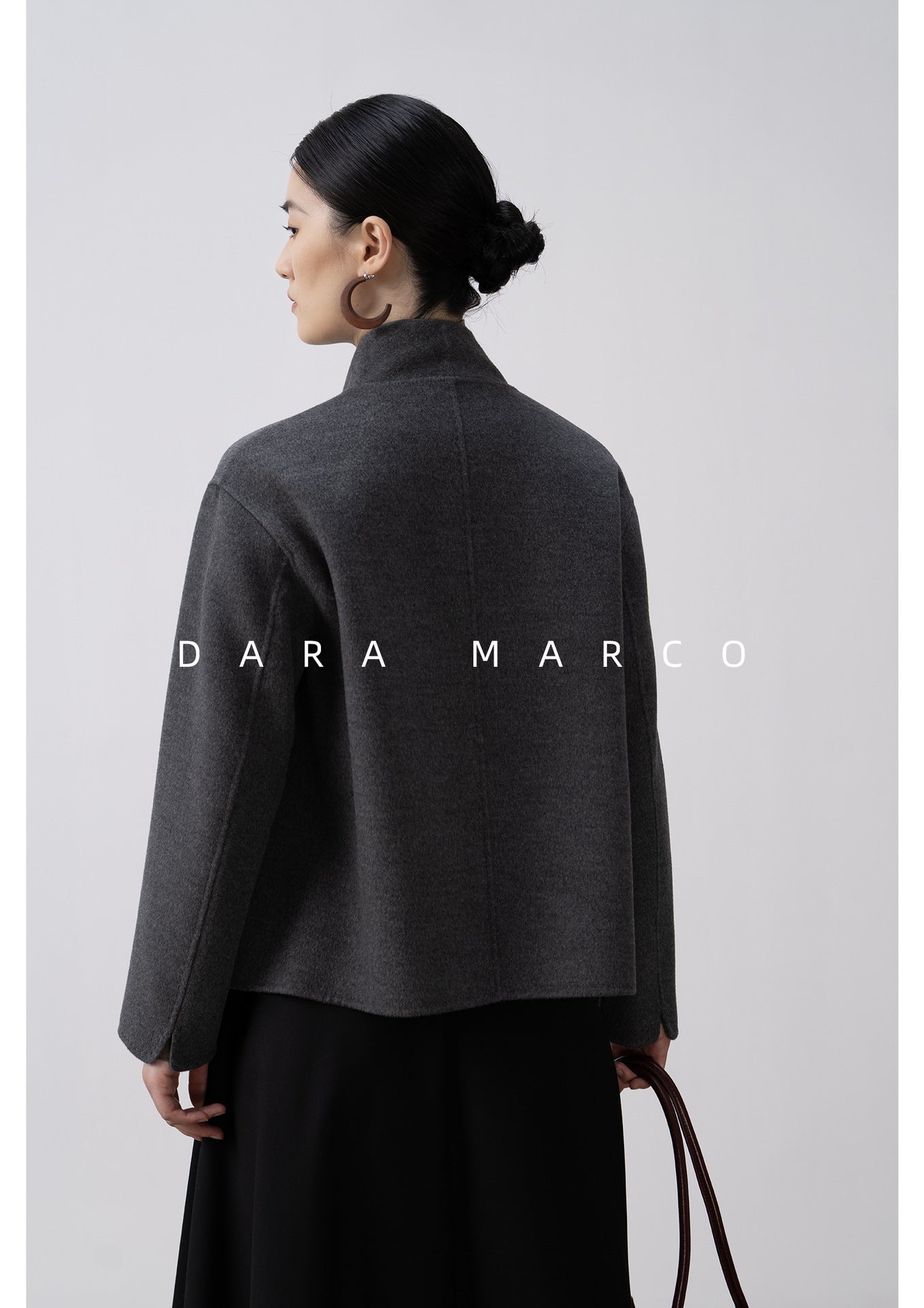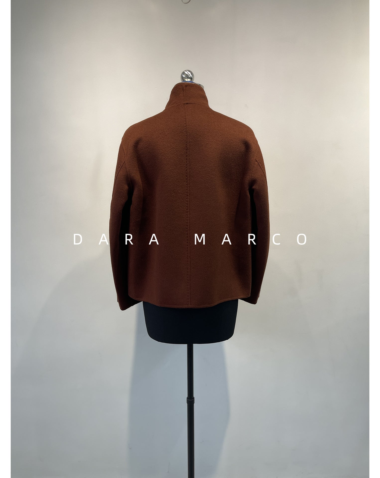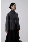 Reversible Cashmere-Blend Short Coat – Lightweight Stand-Collar Jacket
