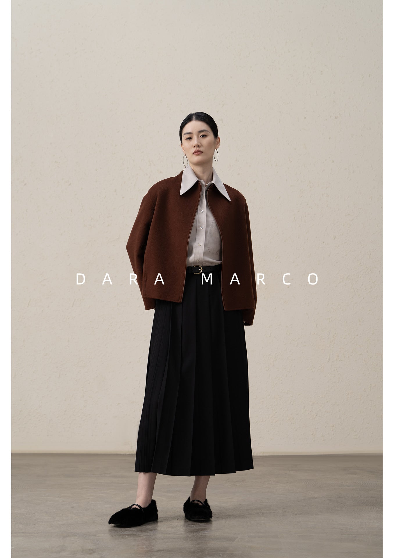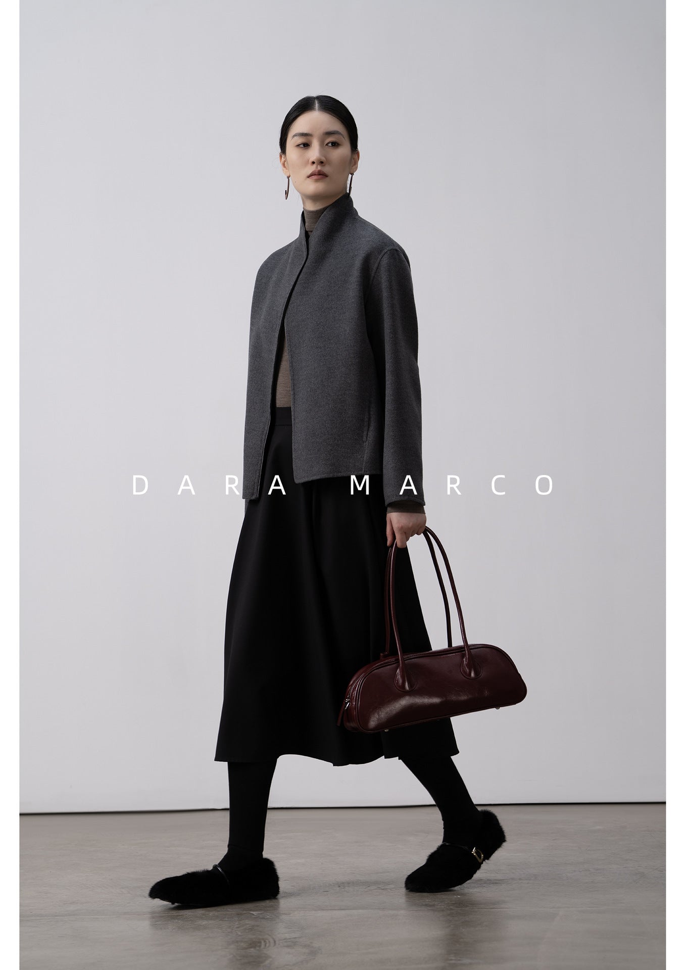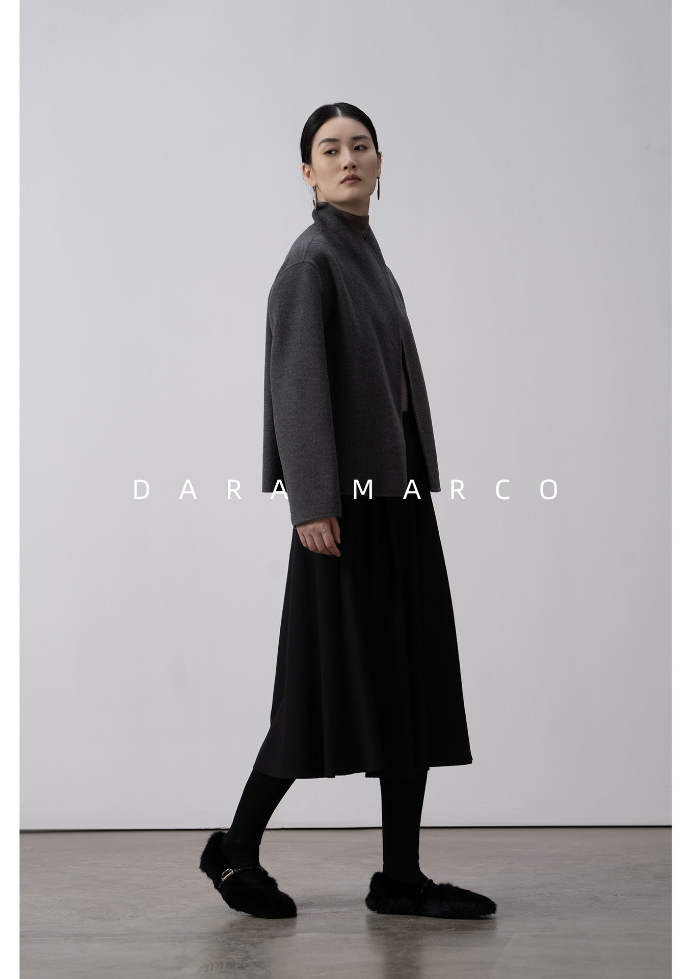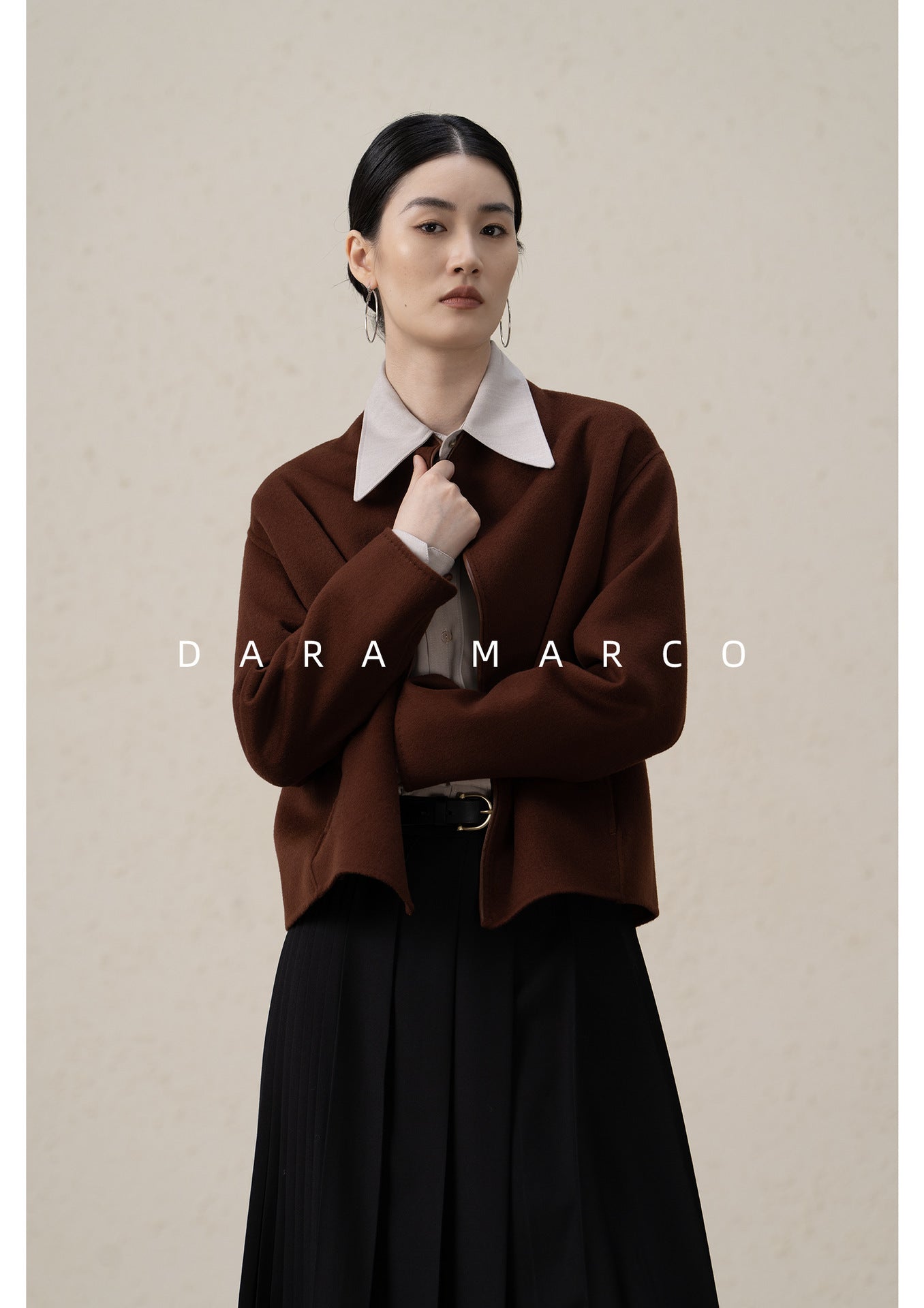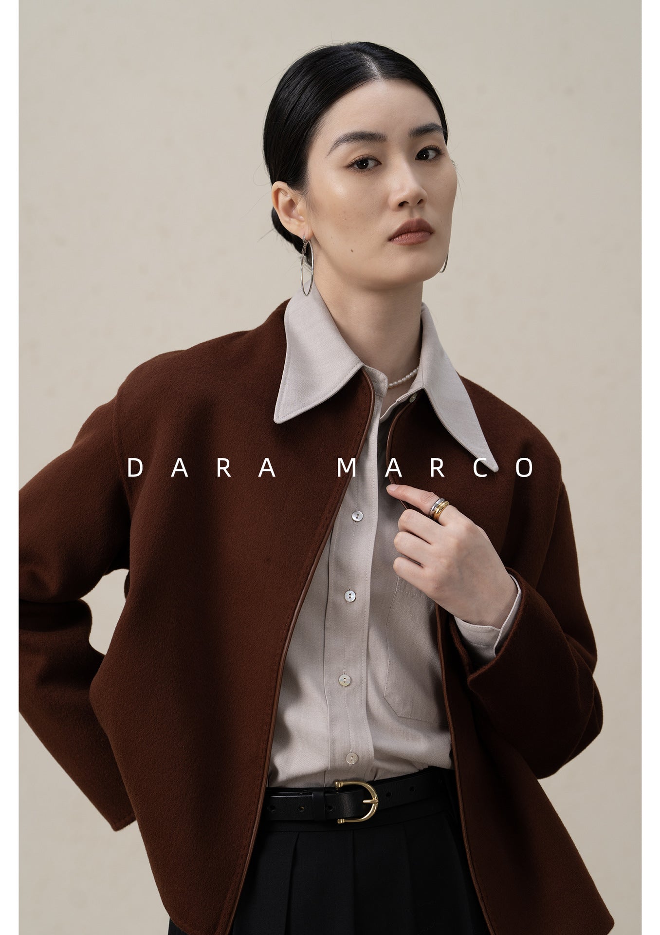 Reversible Cashmere-Blend Short Coat – Lightweight Stand-Collar Jacket