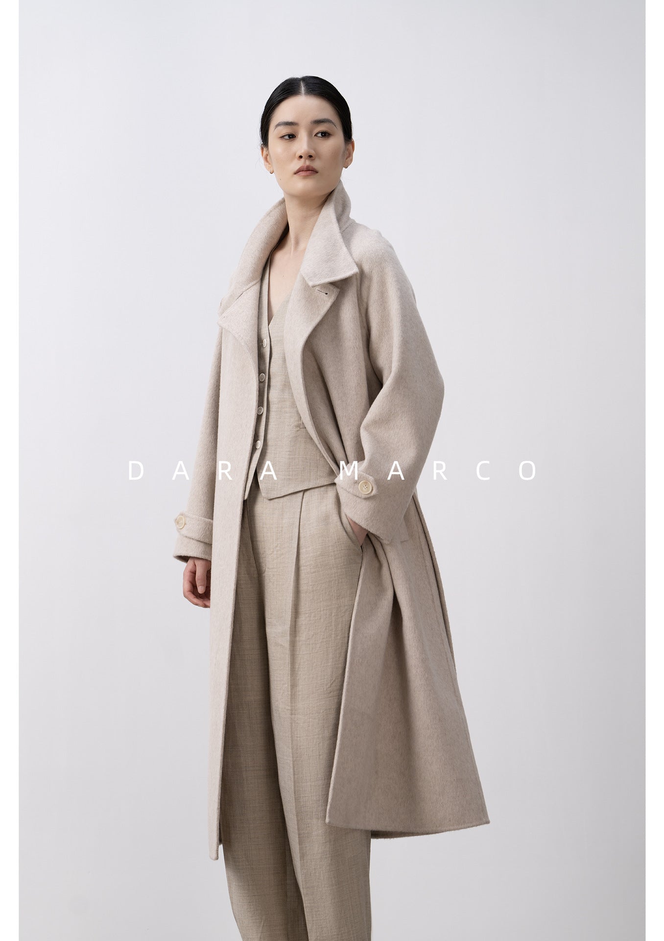 Double-Sided Cashmere Smoke Pipe Collar Trench Coat – Autumn Winter