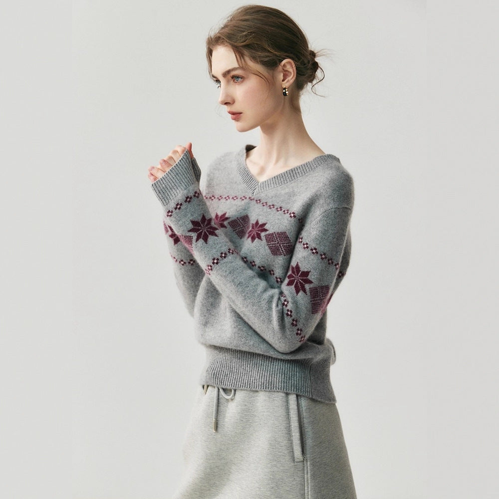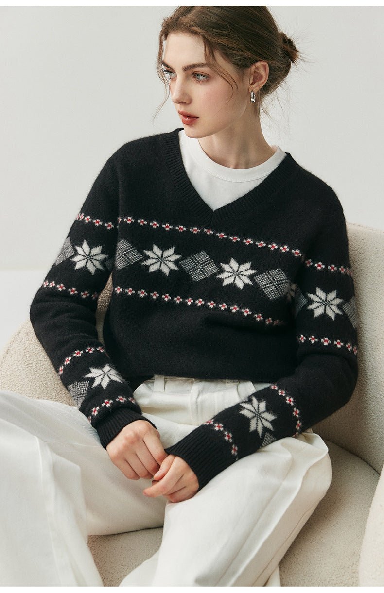Cashmere Fair Isle Snowflake V-Neck – Cozy Nordic Dream