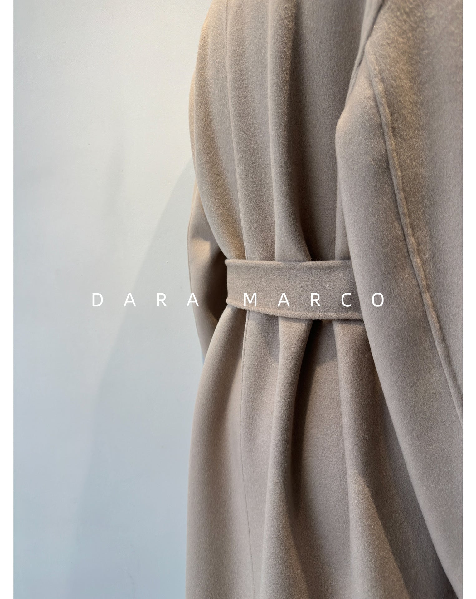 Its double-sided construction delivers warmth without heaviness, providing a weightless drape and an elegant silhouette that naturally shapes the body.
