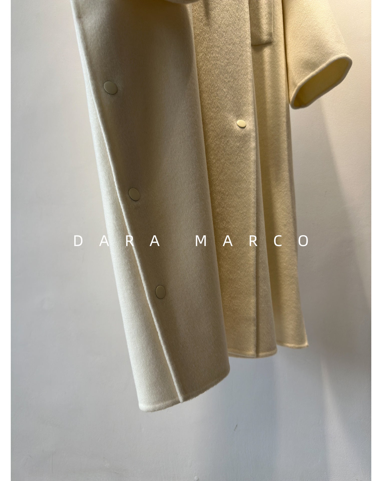 The double-sided construction enhances structure while keeping the coat lightweight, offering a graceful drape without unnecessary bulk.