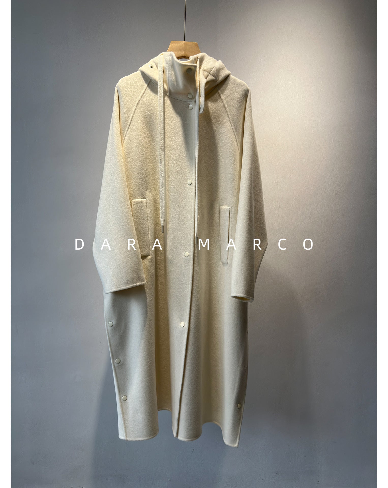 Extra-Long Wool Coat with Hood – Luxury Double-Sided Cashmere Blend