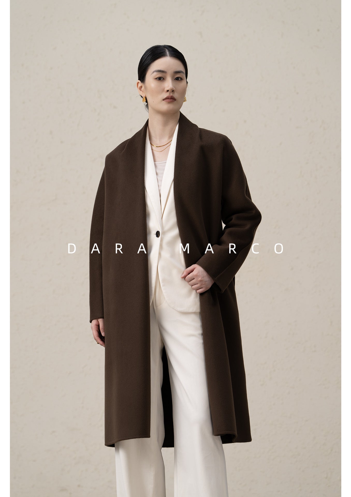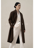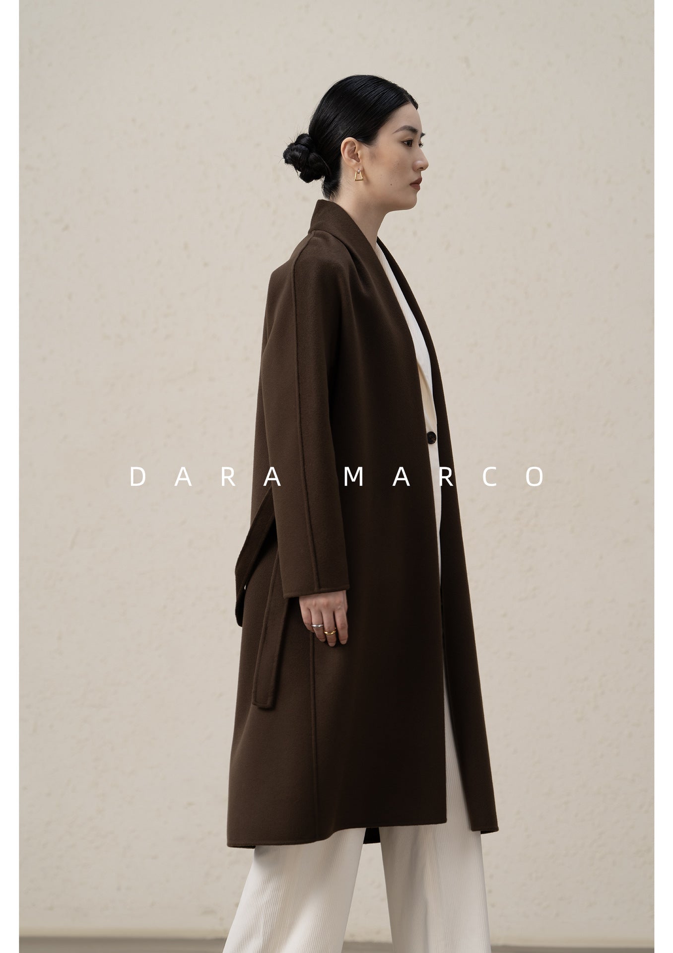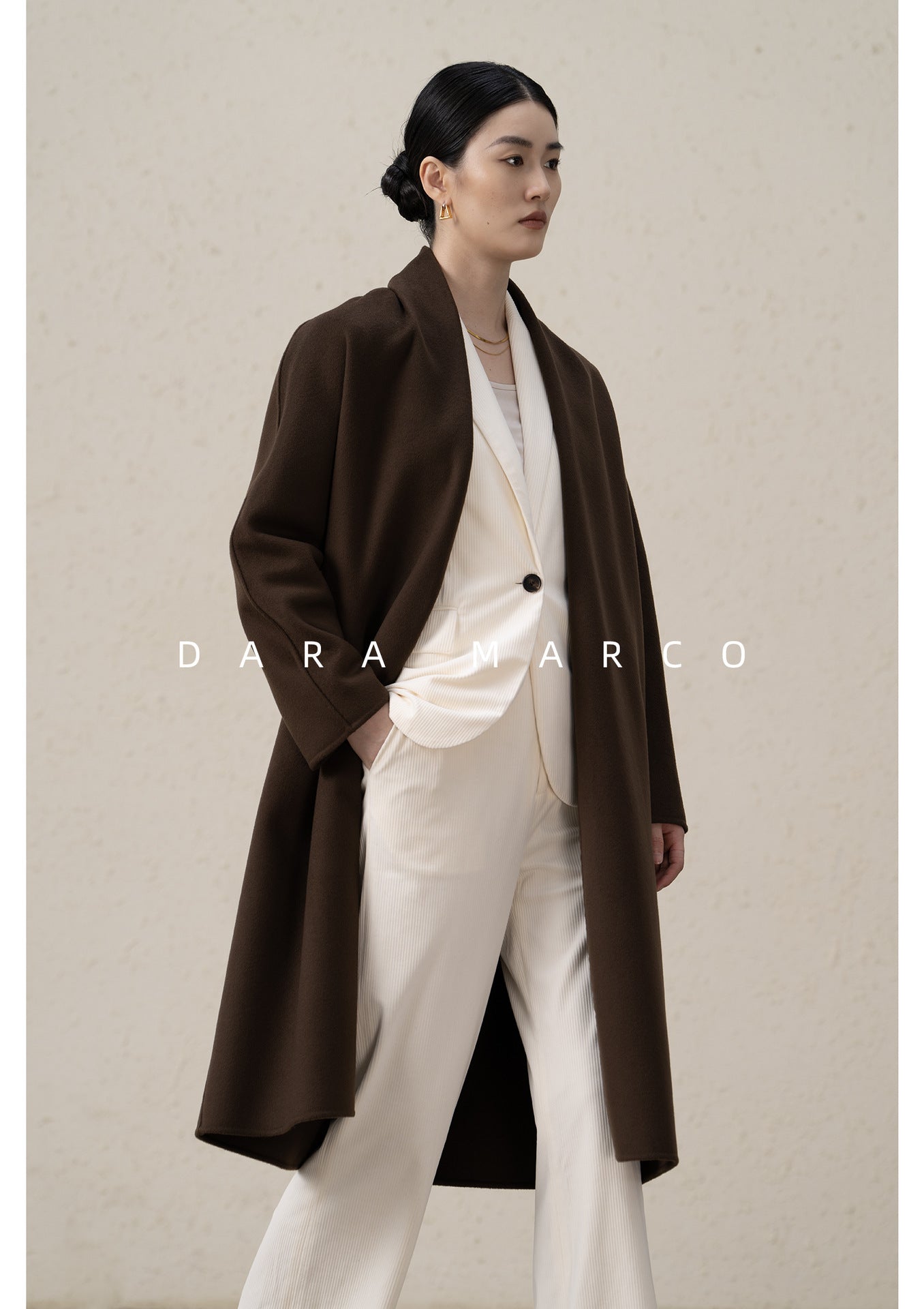 • Designed for women who appreciate softness without sacrificing structure, this long double-sided cashmere coat wraps gently around the body with a calm, elegant drape.