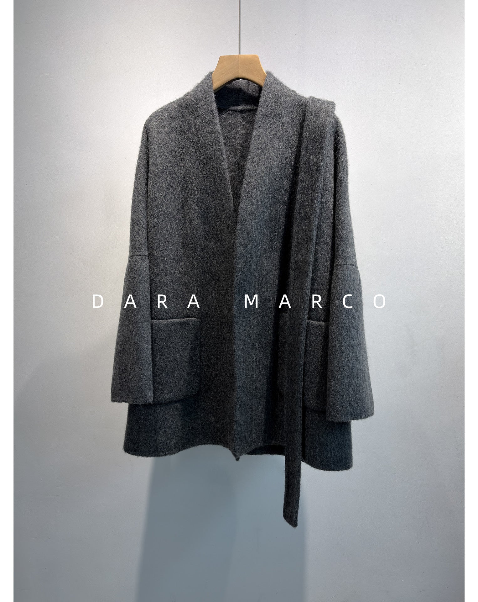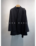 The bathrobe-inspired silhouette wraps the body effortlessly, creating a gentle cocoon effect that flatters all body shapes while maintaining a refined minimalist look.
