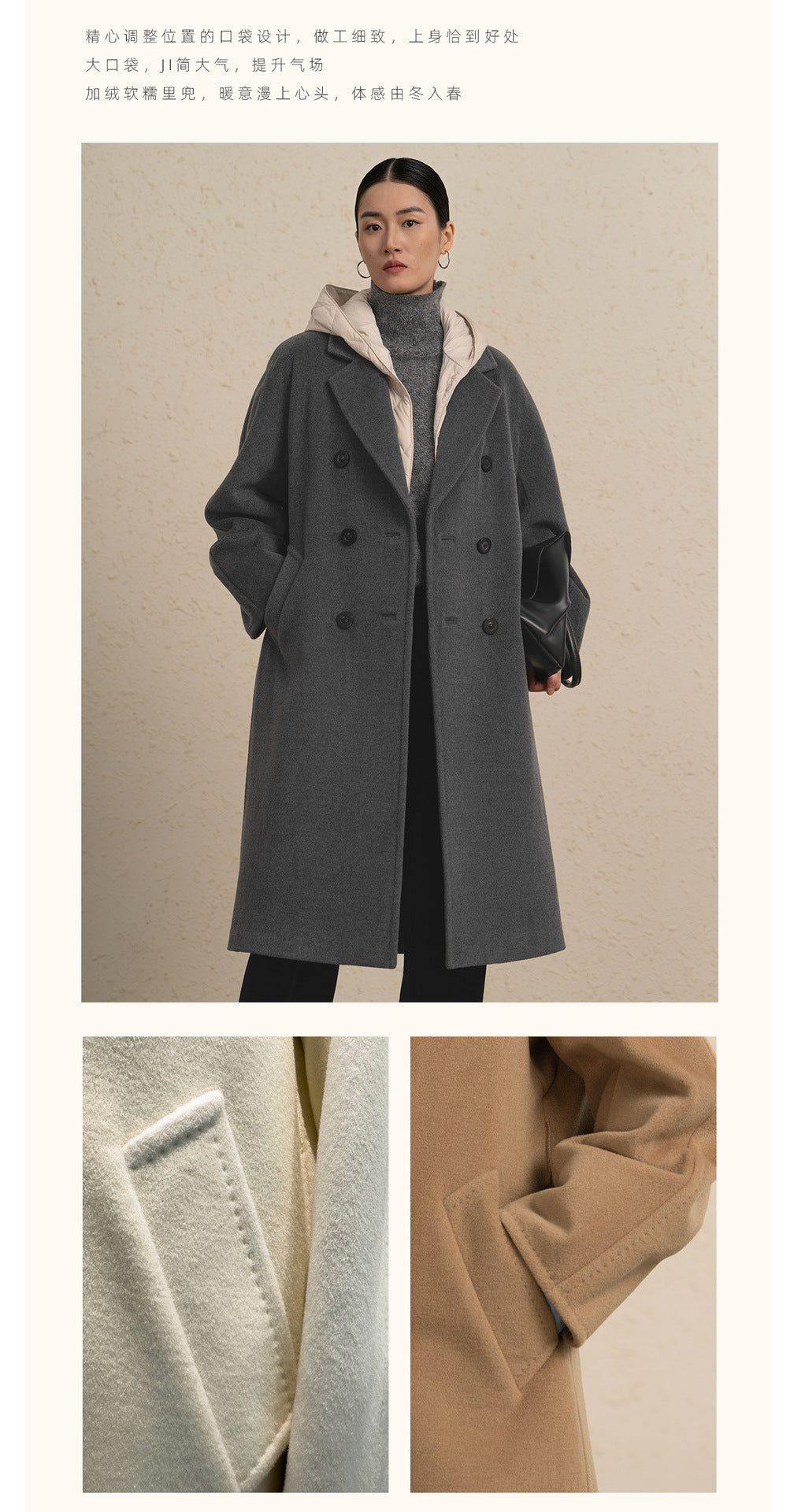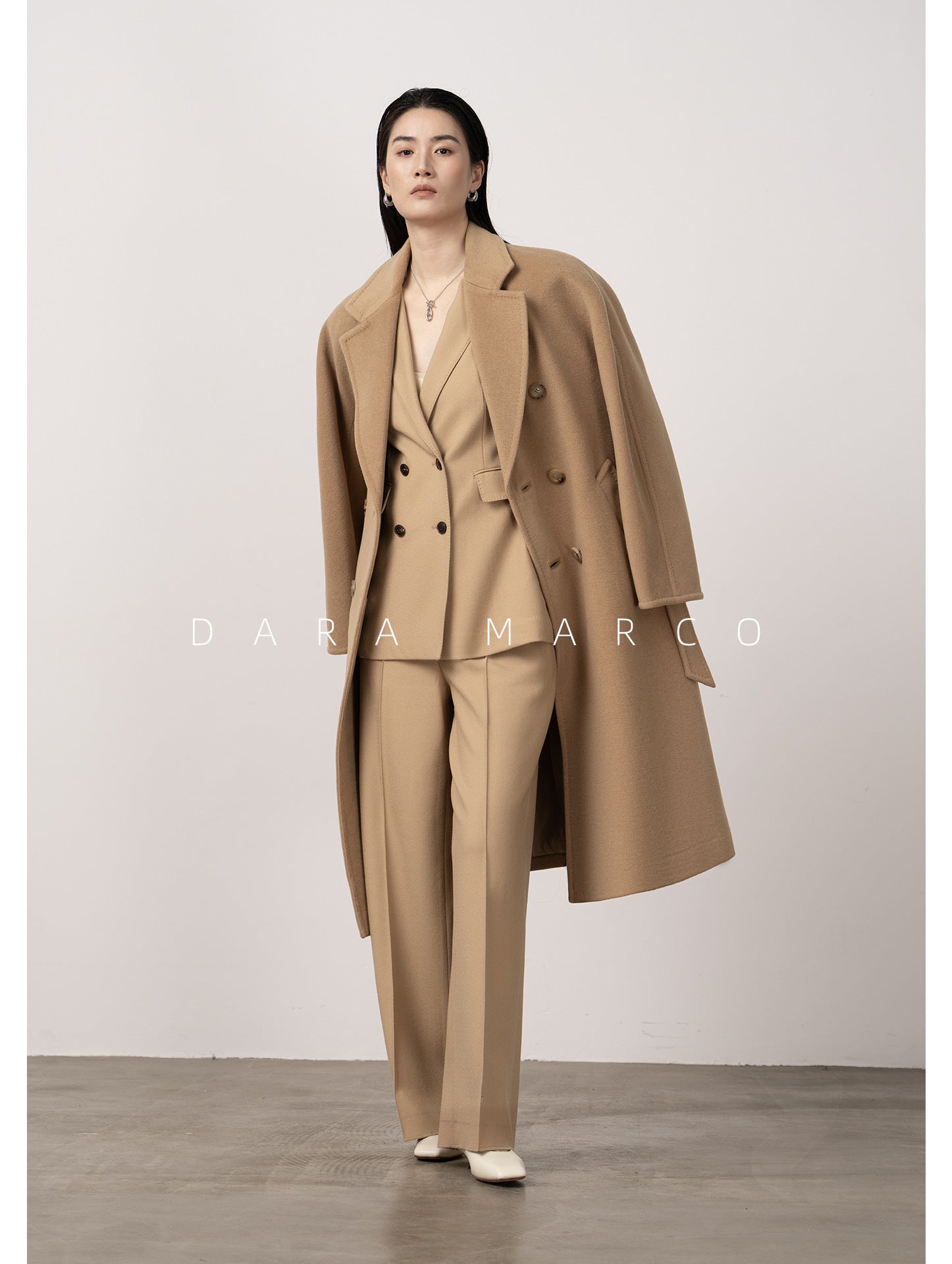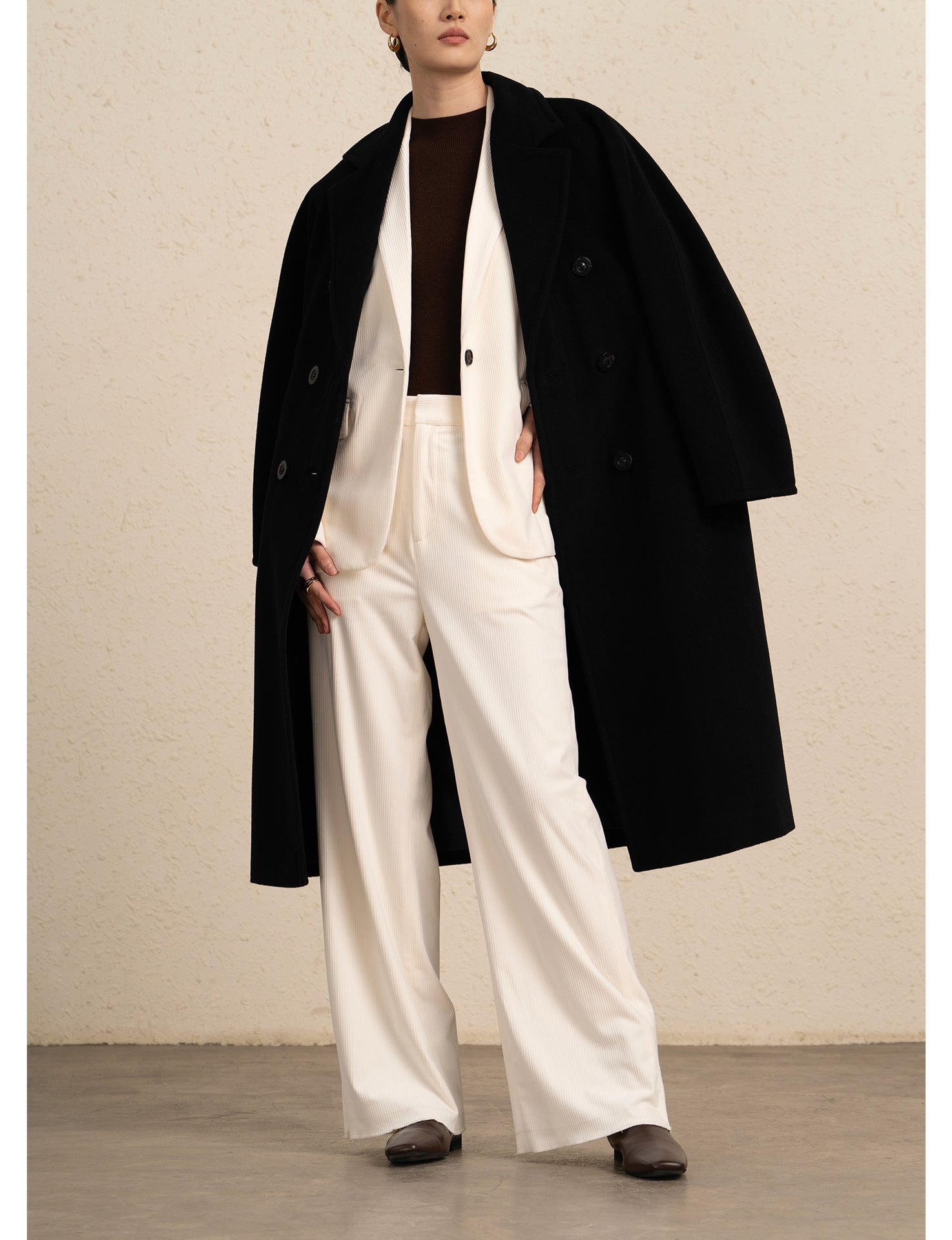 Cashmere Wool Coat Women — Elegant Double-Breasted Cocoon Silhouette