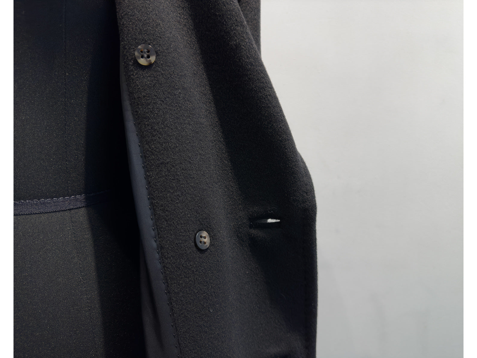 Smooth, breathable, and anti-static, the acetate lining elevates comfort, allowing the coat to glide easily over sweaters without friction. -