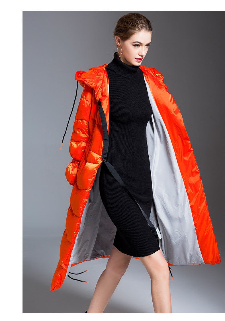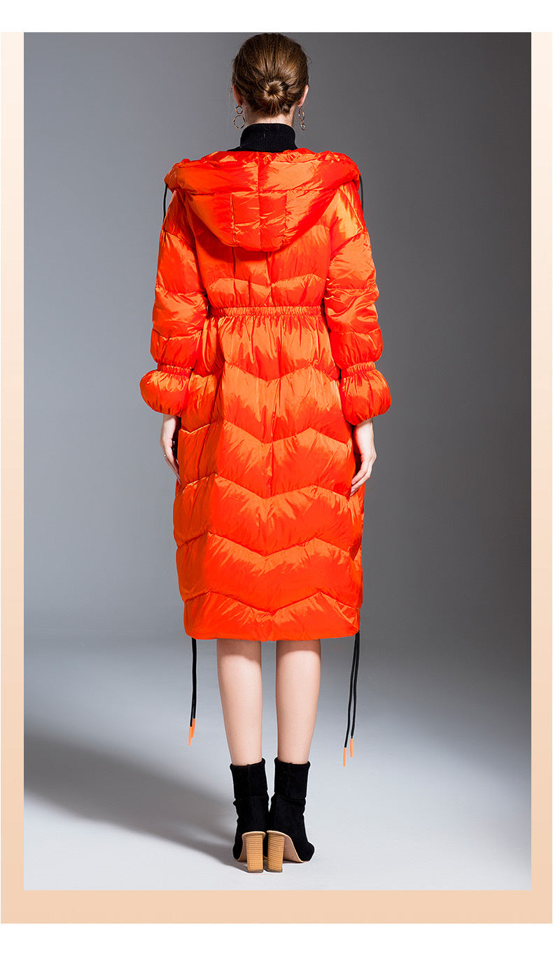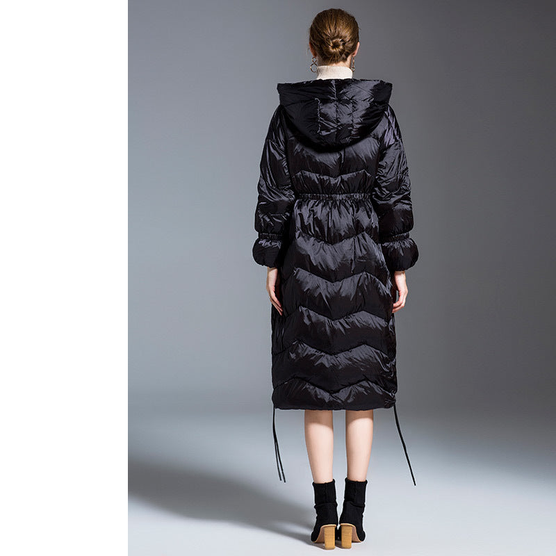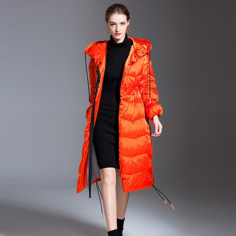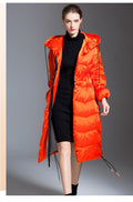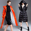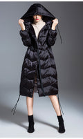 Women's Down Jacket Hooded Long Coat – Thickened 90% White Duck Down Slim Fit Winter Jacket