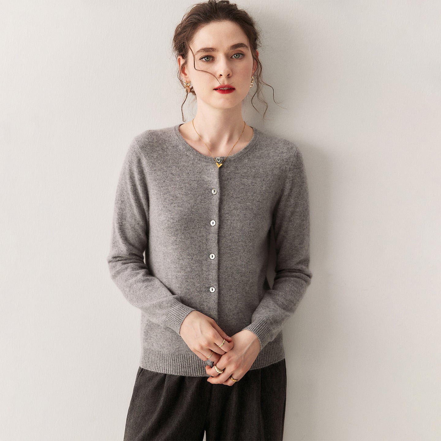 The minimalist round-neck design frames the neckline softly without feeling tight or restrictive. It layers effortlessly under coats and pairs well with scarves, offering both comfort and a refined, polished look.