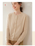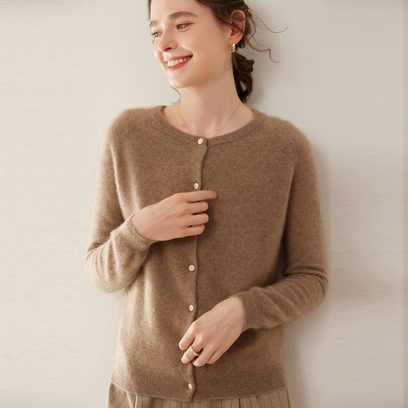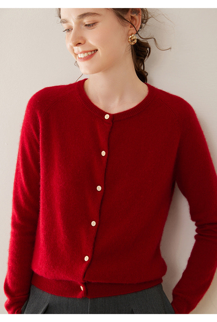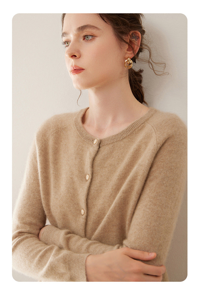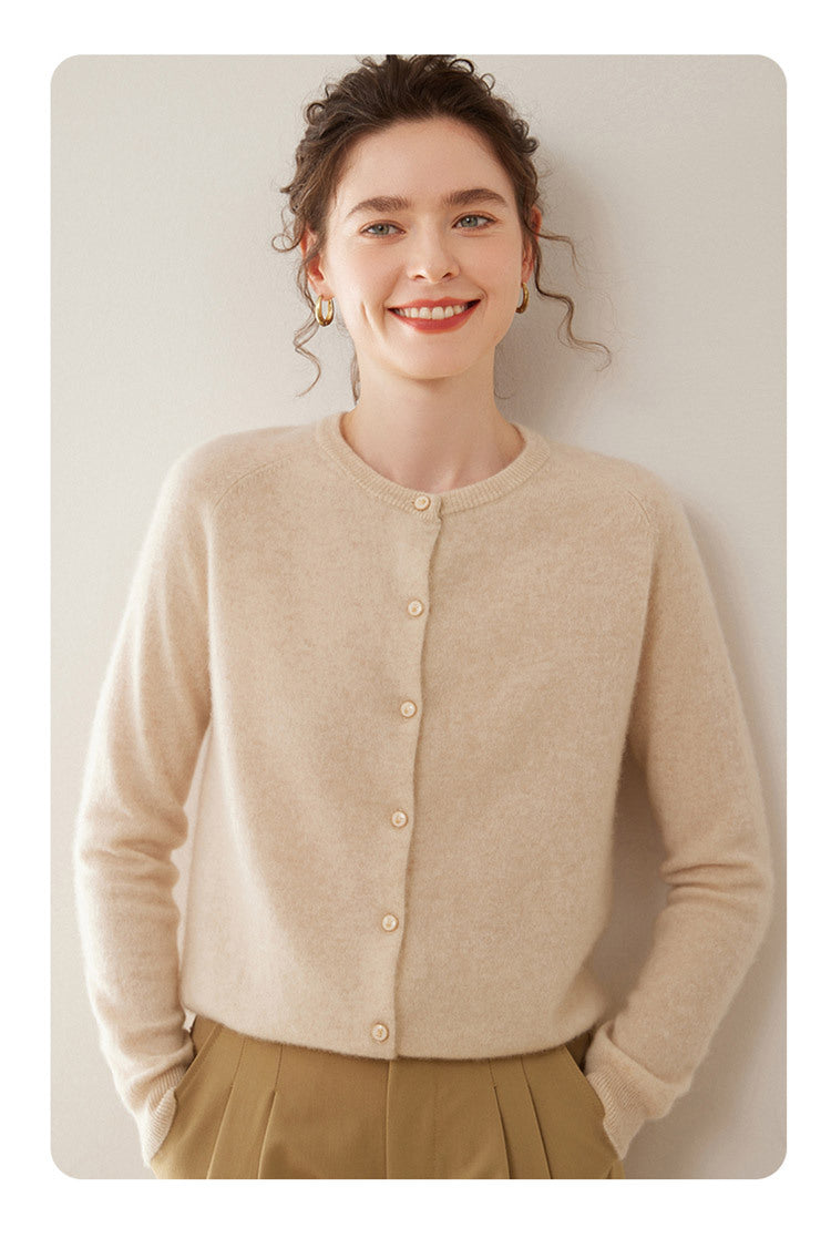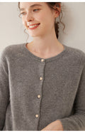 The round-neck design is simple yet sophisticated, creating an effortlessly chic look that complements any outfit. Ideal for layering, it allows you to maintain warmth without compromising on style. No more bulky sweaters that restrict your movement—this cardigan moves with you, offering a flattering fit and superior breathability.