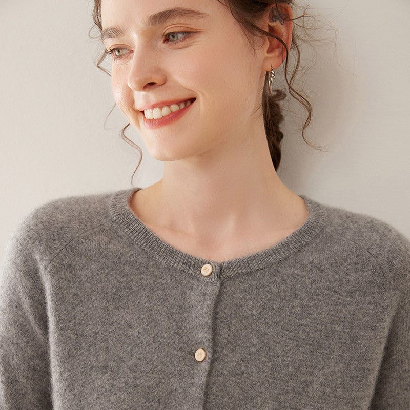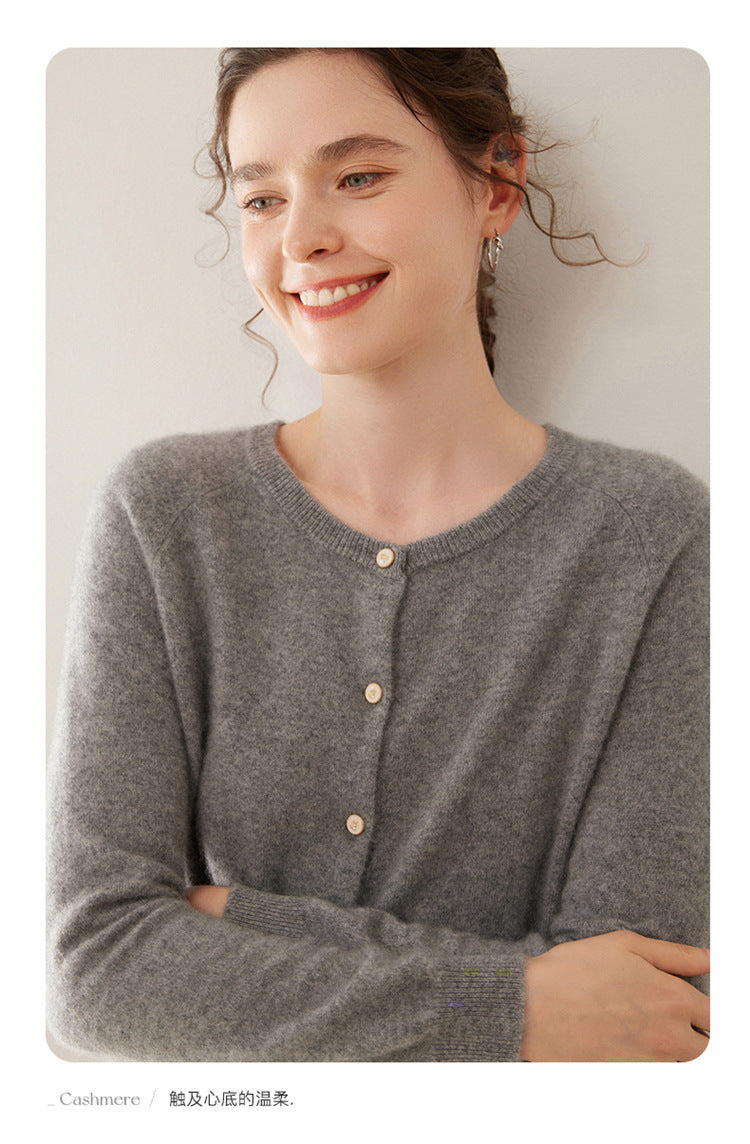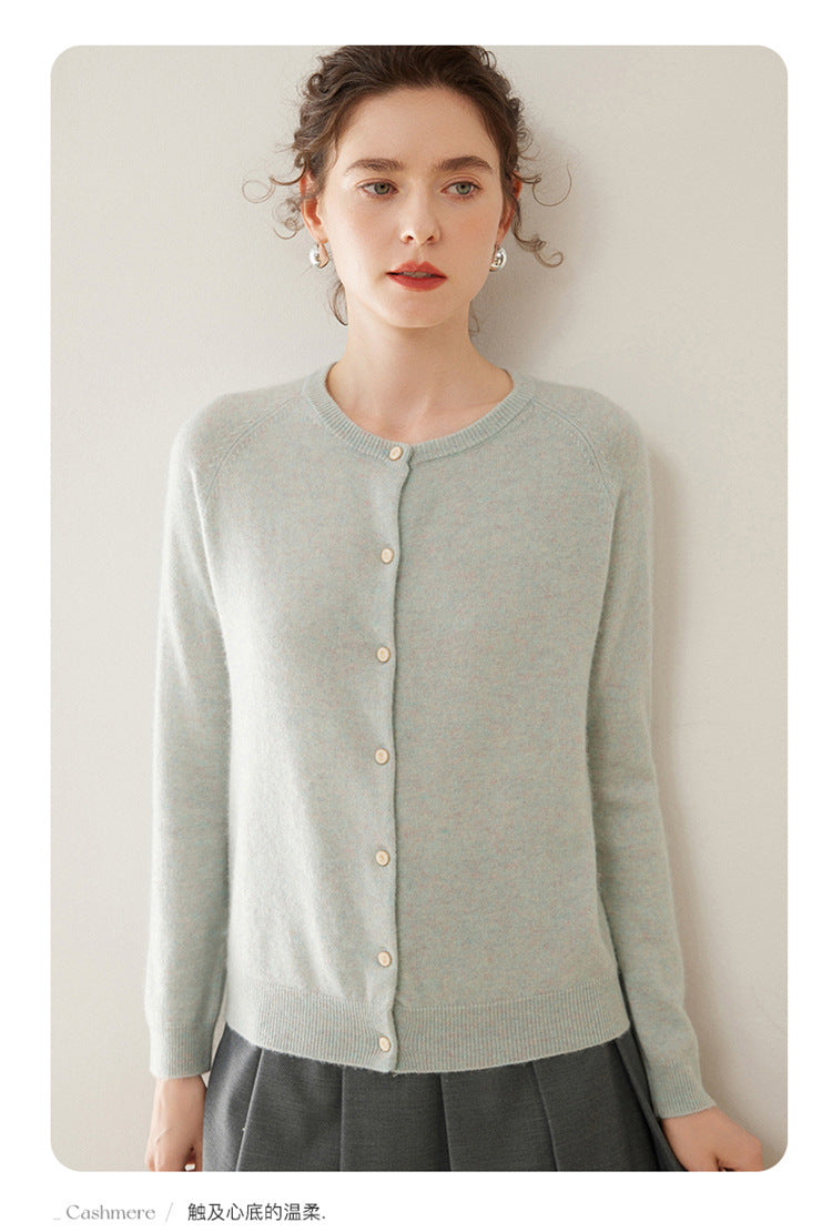 Cashmere Cardigan – Women’s 100% Pure Cashmere Round Neck Sweater Jacket