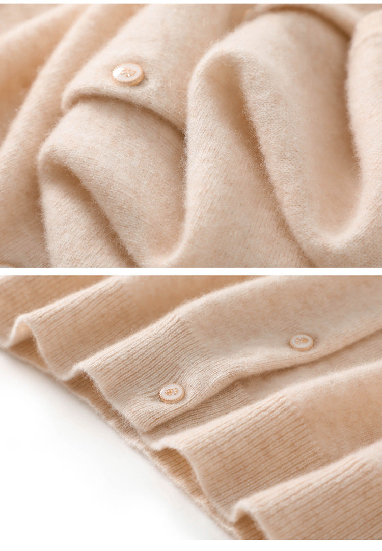 Whether you're headed out for a brisk walk or enjoying a cozy afternoon at home, this cardigan keeps you feeling your best. The luxury of pure cashmere makes every moment feel indulgent, while the versatile design ensures that you’ll never want to take it off.