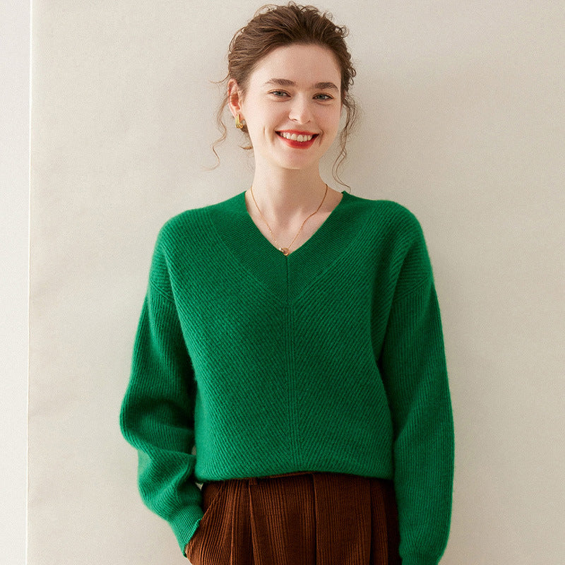 Cashmere Yuanbao-Stitch V-Neck – Naked-Touch Softness