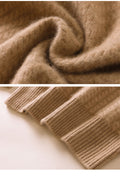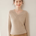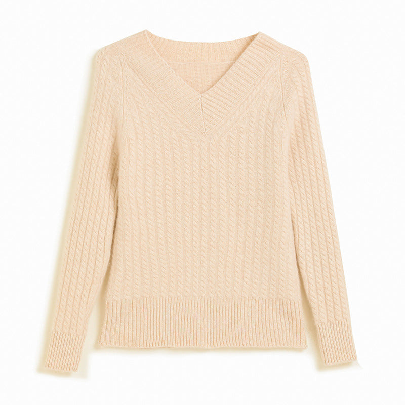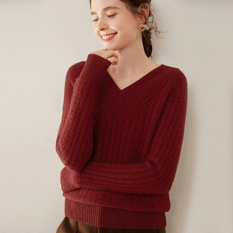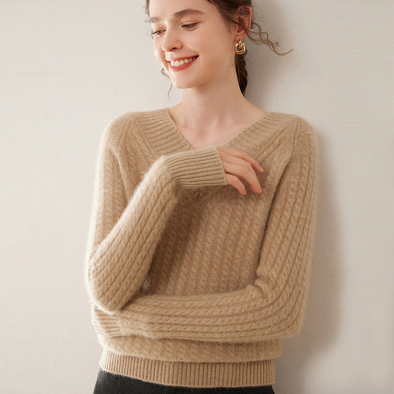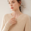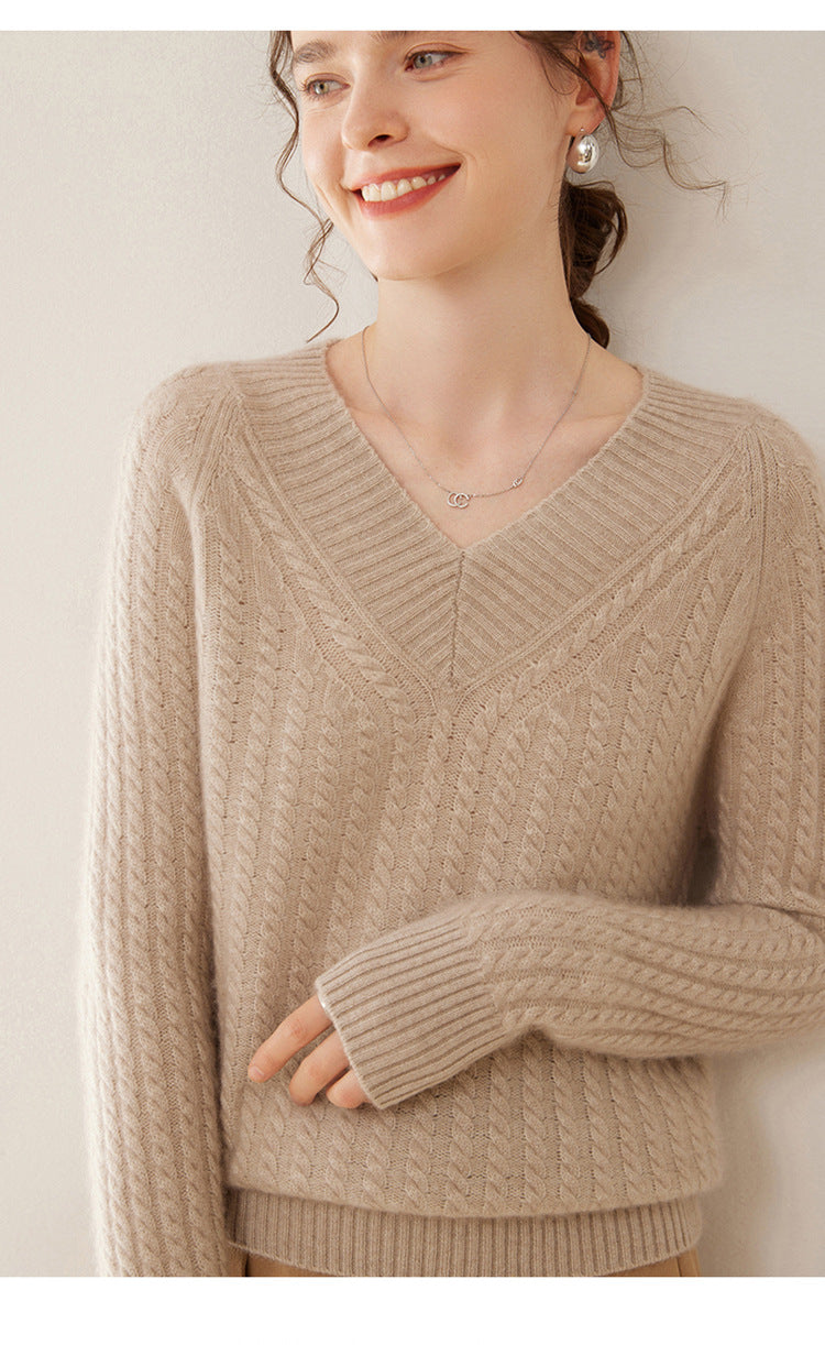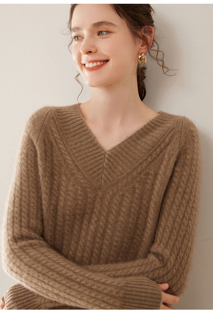 Cashmere V-Neck Sweater for Women – Thickened Cable Knit Loose Base Layer