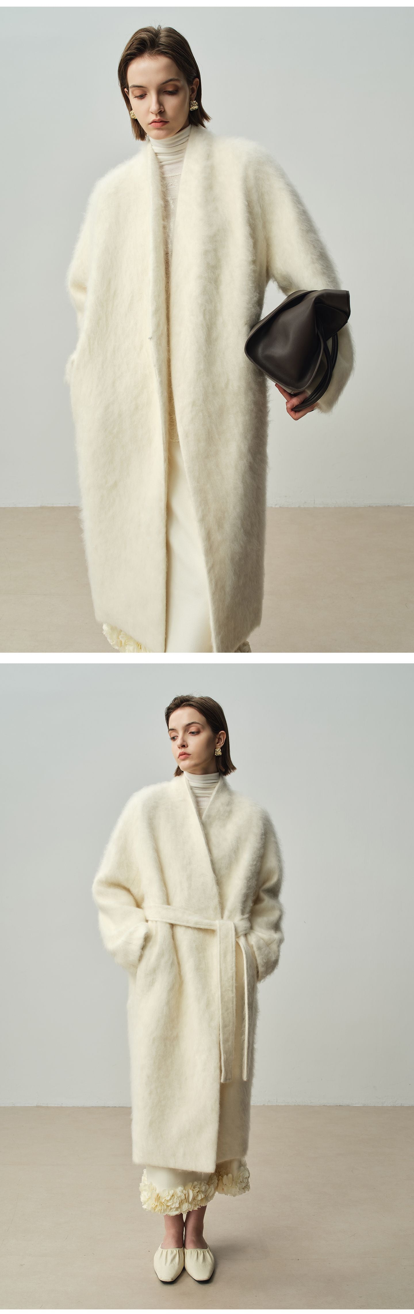 Keywords: Australian wool coat, quiet luxury overcoat, bathrobe tie coat