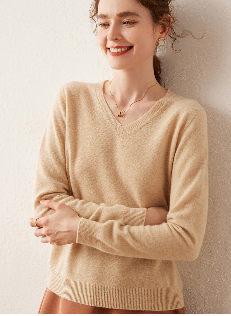 100% Pure Cashmere V-Neck Women’s Sweater – Slim Fit, Soft and Versatile