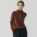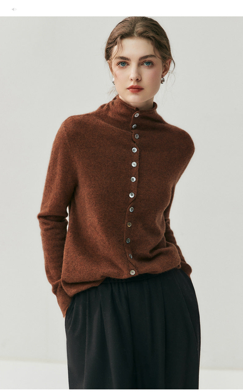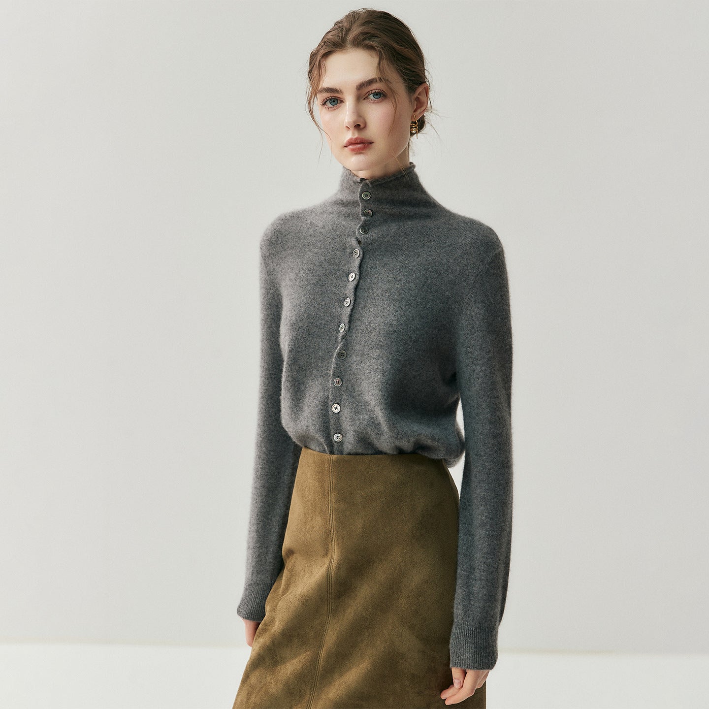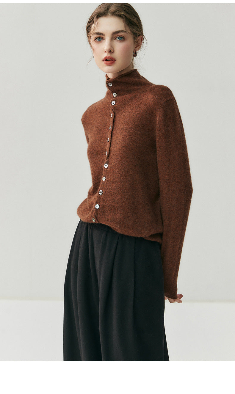 Many fitted knits pull across the chest or twist when moving. This cardigan’s button-down design offers a clean vertical line that flatters the body without clinging. It allows easy layering and gives you a relaxed yet elegant fit.