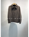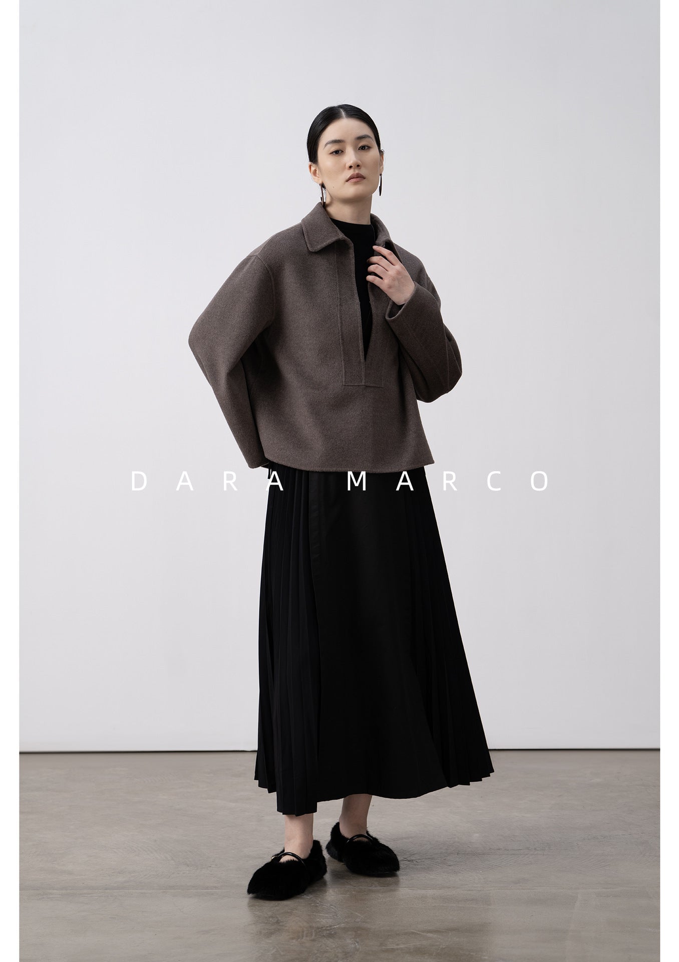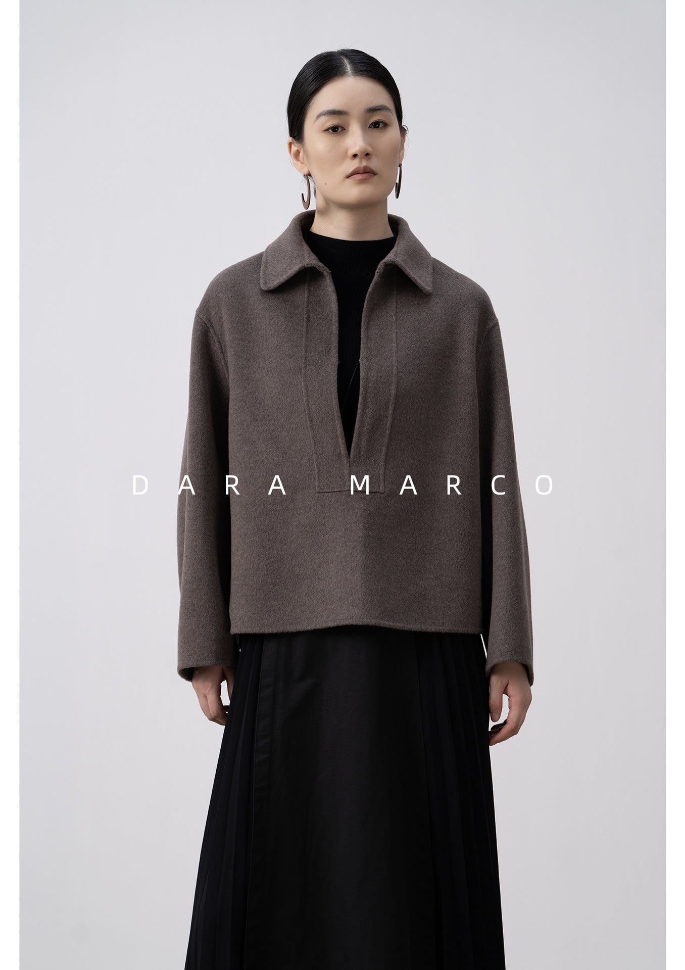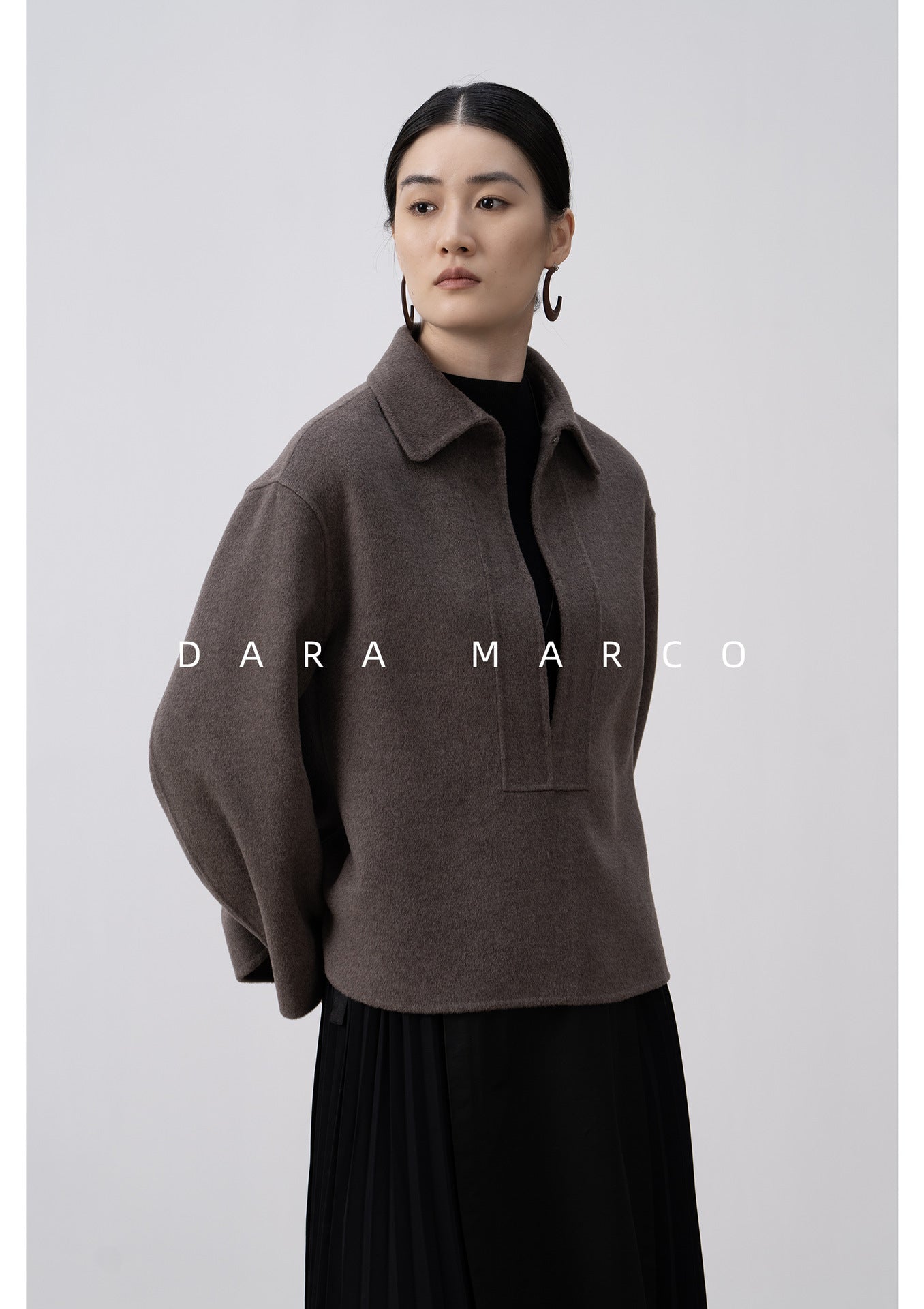 • Its short, relaxed cut creates an easygoing “lazy elegance” effect, perfect for pairing with knits, trousers, or winter dresses.