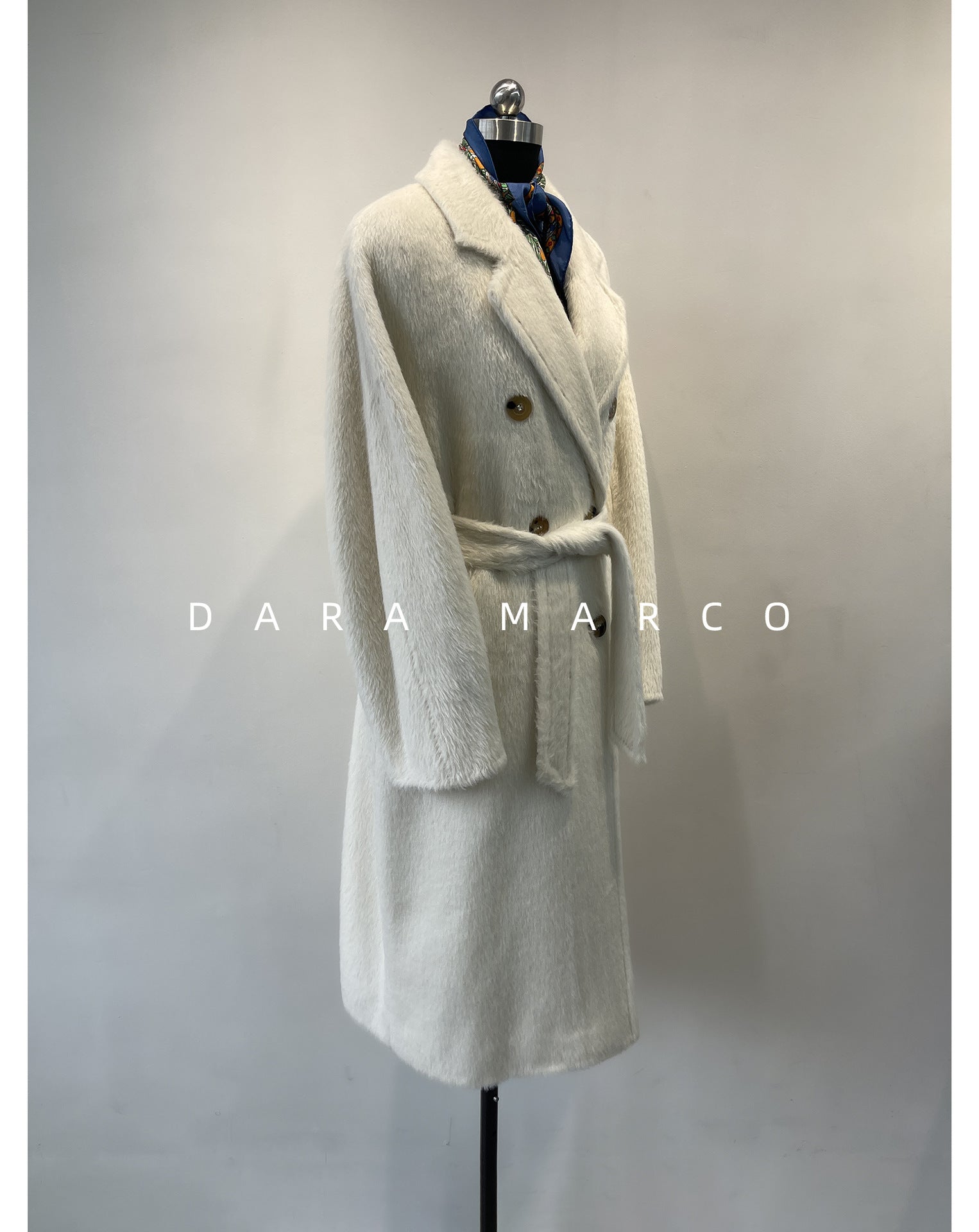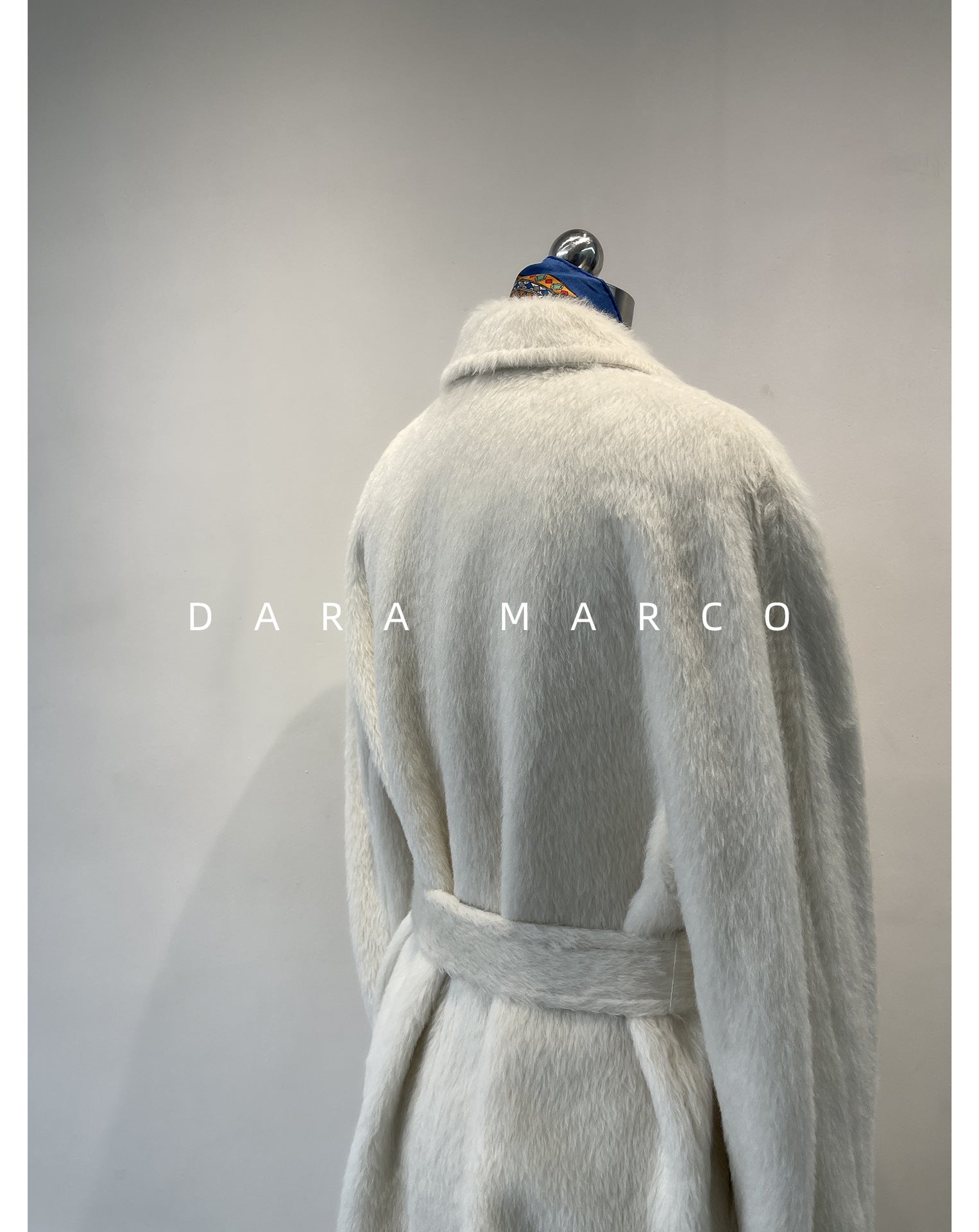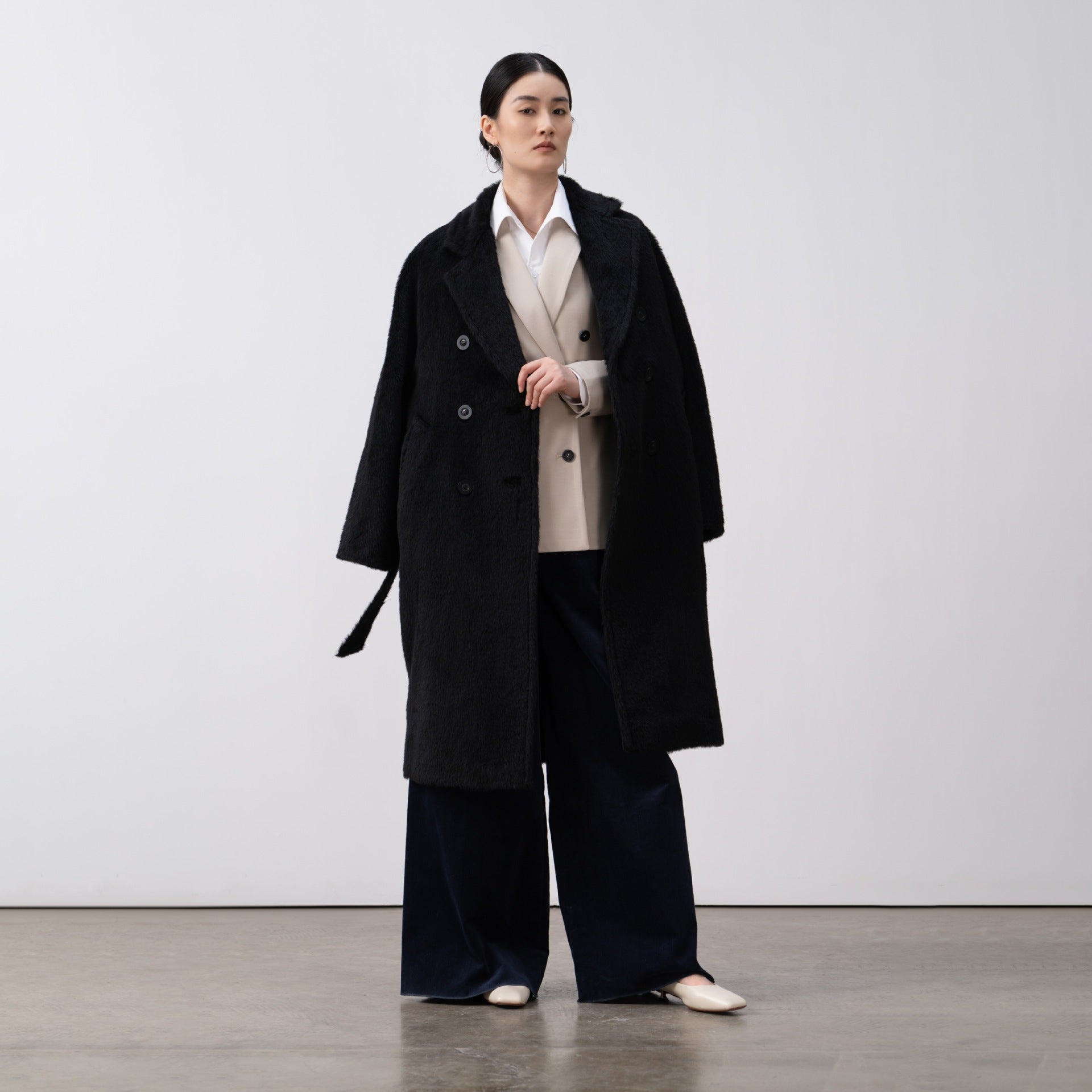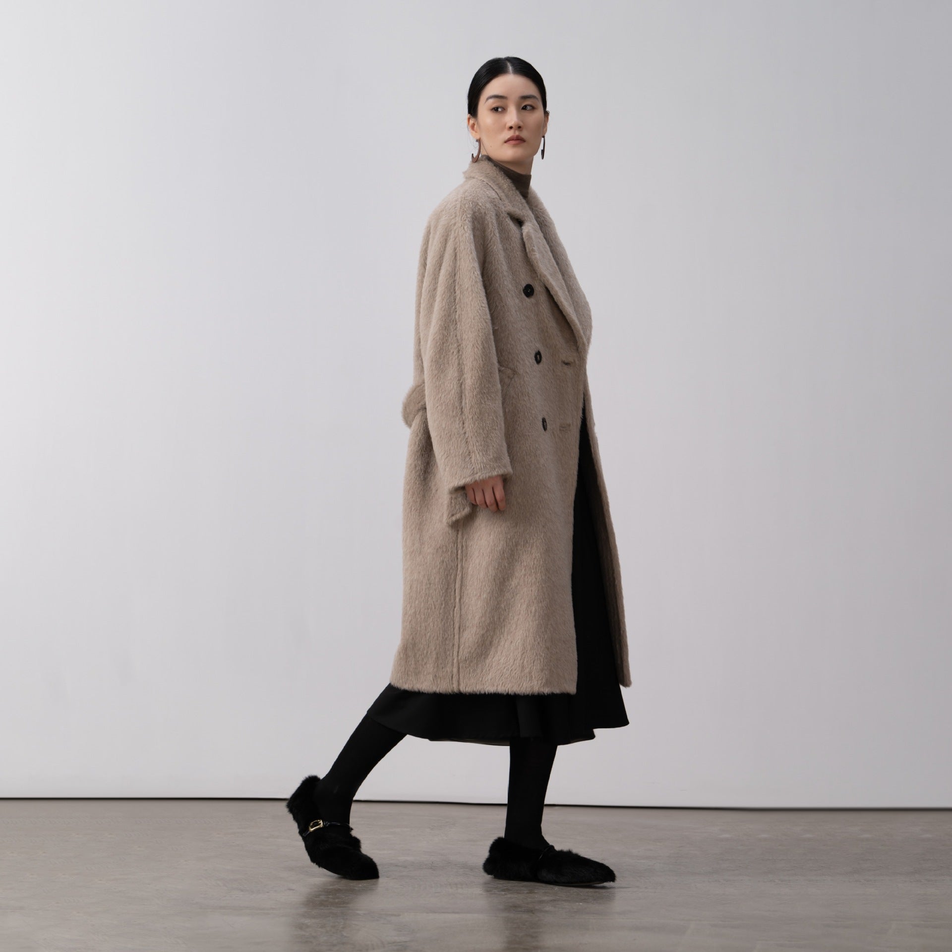 Crafted from a luxurious blend of Suri alpaca and Merino wool, this long coat delivers a rare combination of warmth, structure, and lightness—ideal for winter while still feeling breathable and soft against the skin.