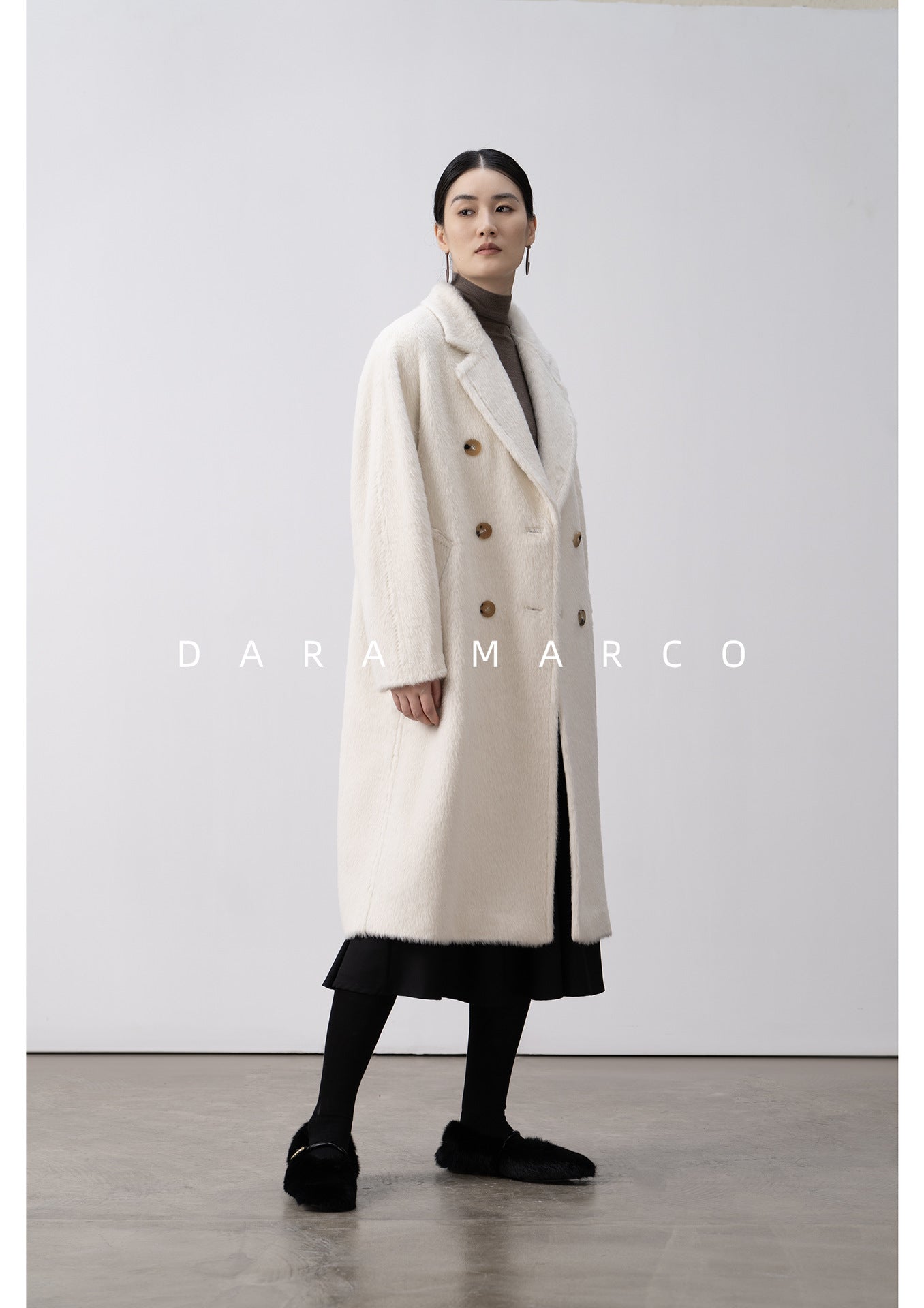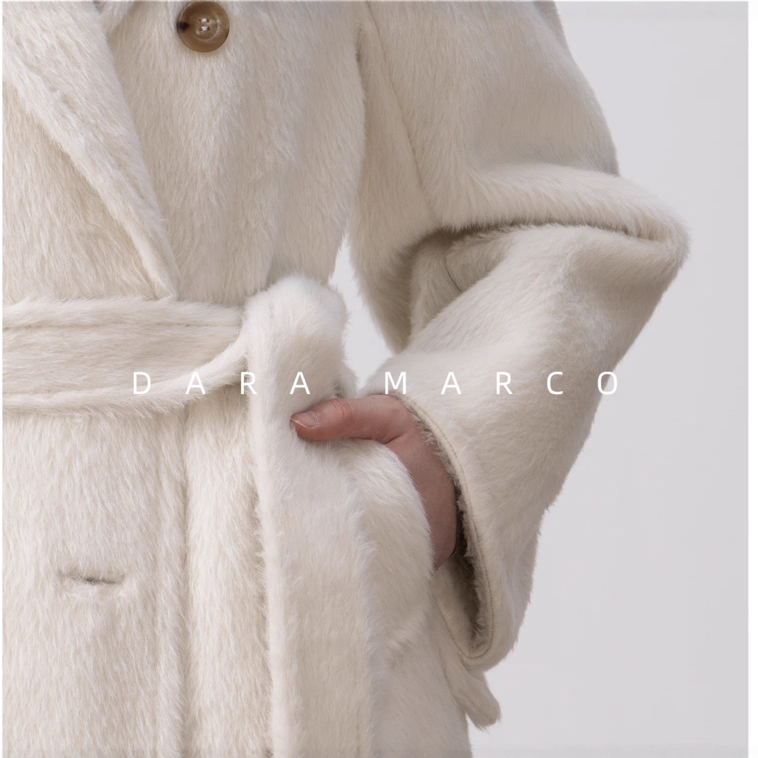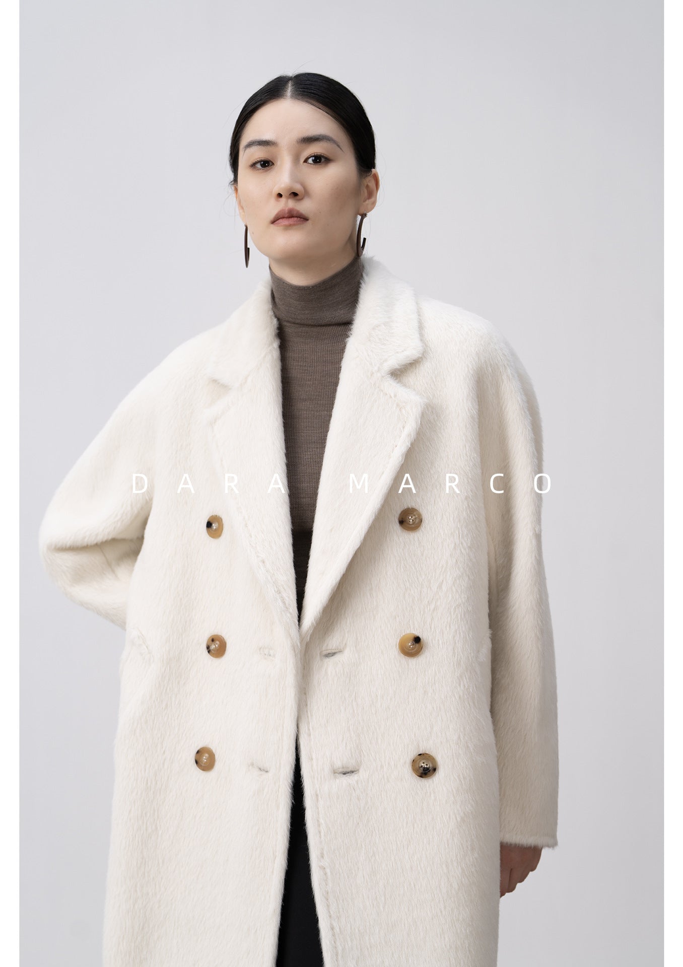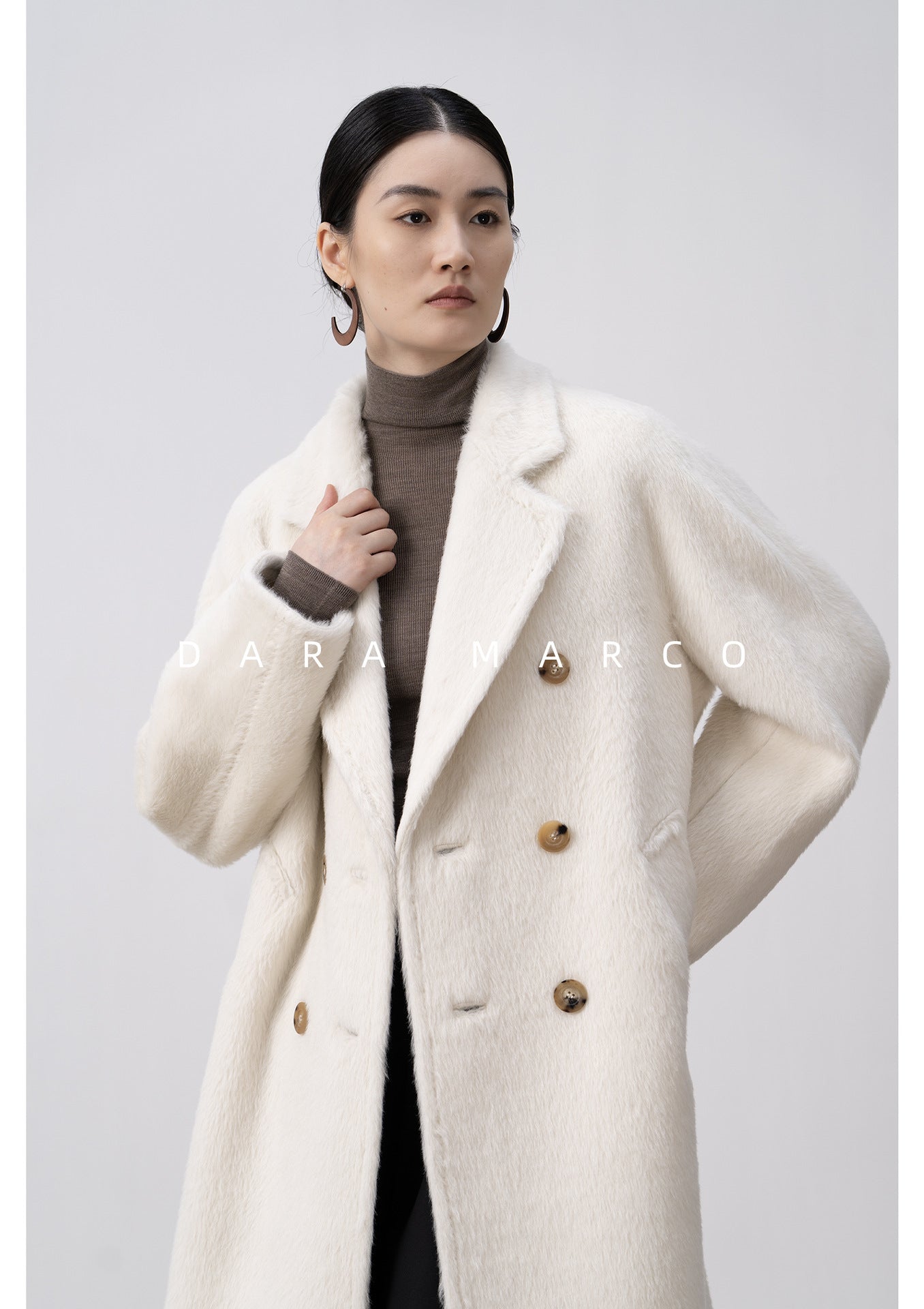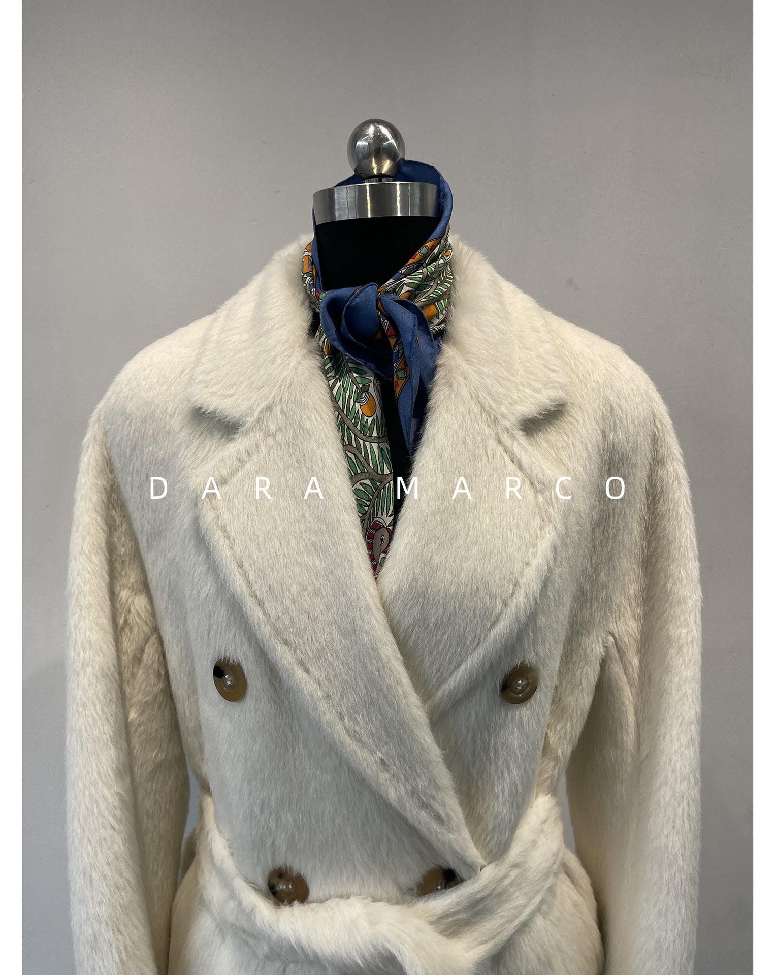 Crafted from a luxurious blend of Suri alpaca and Merino wool, this long coat delivers a rare combination of warmth, structure, and lightness—ideal for winter while still feeling breathable and soft against the skin.
