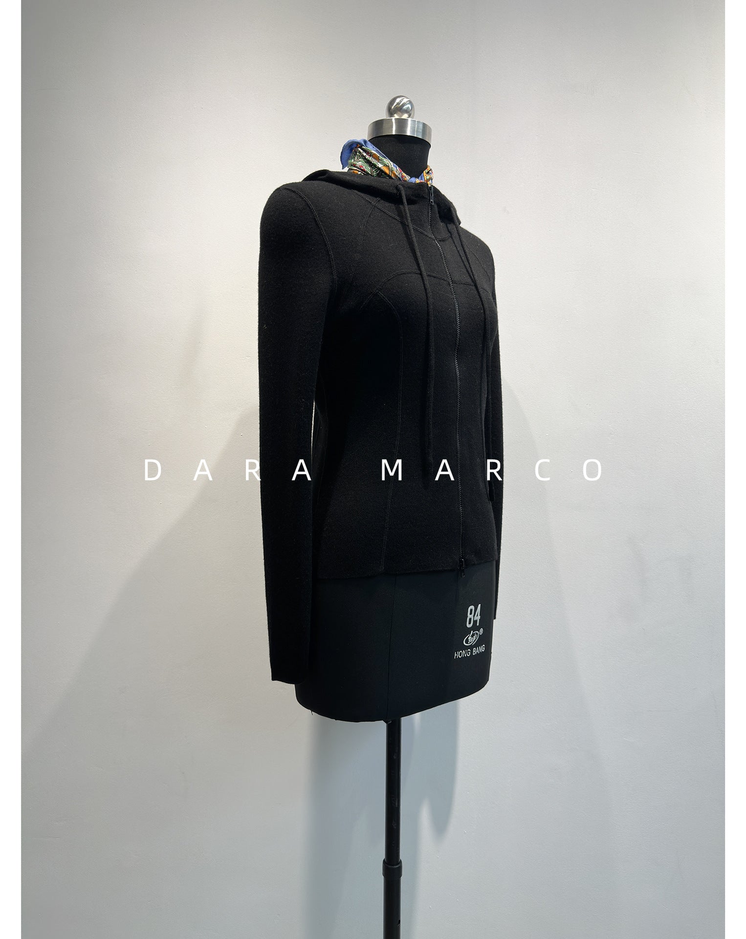 A clean sportif hooded design adds a modern touch, making it easy to pair with coats, trousers, denim, or athleisure pieces for effortless autumn–winter styling.