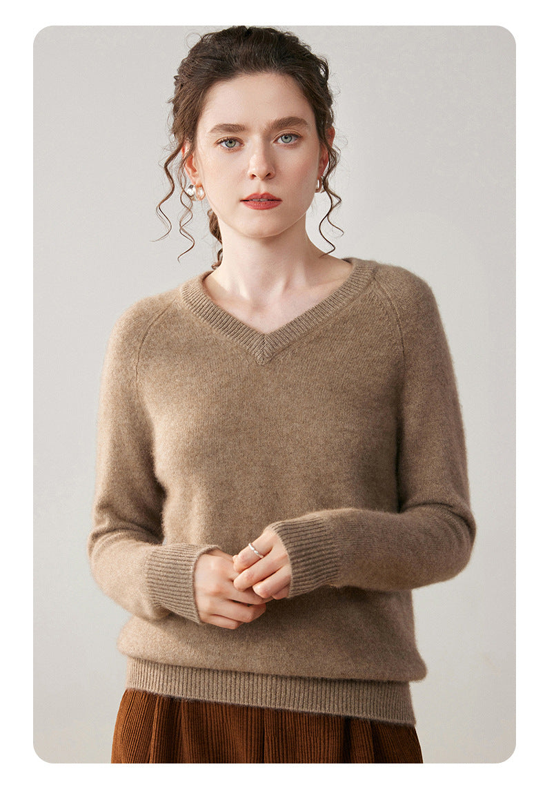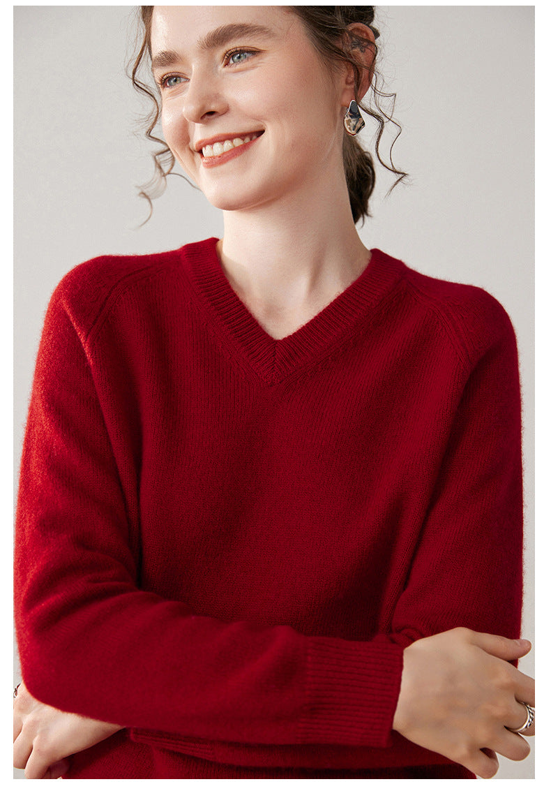 Cashmere V-Neck Women’s Sweater – 100% Pure Thick Knit Raglan Sleeve Top